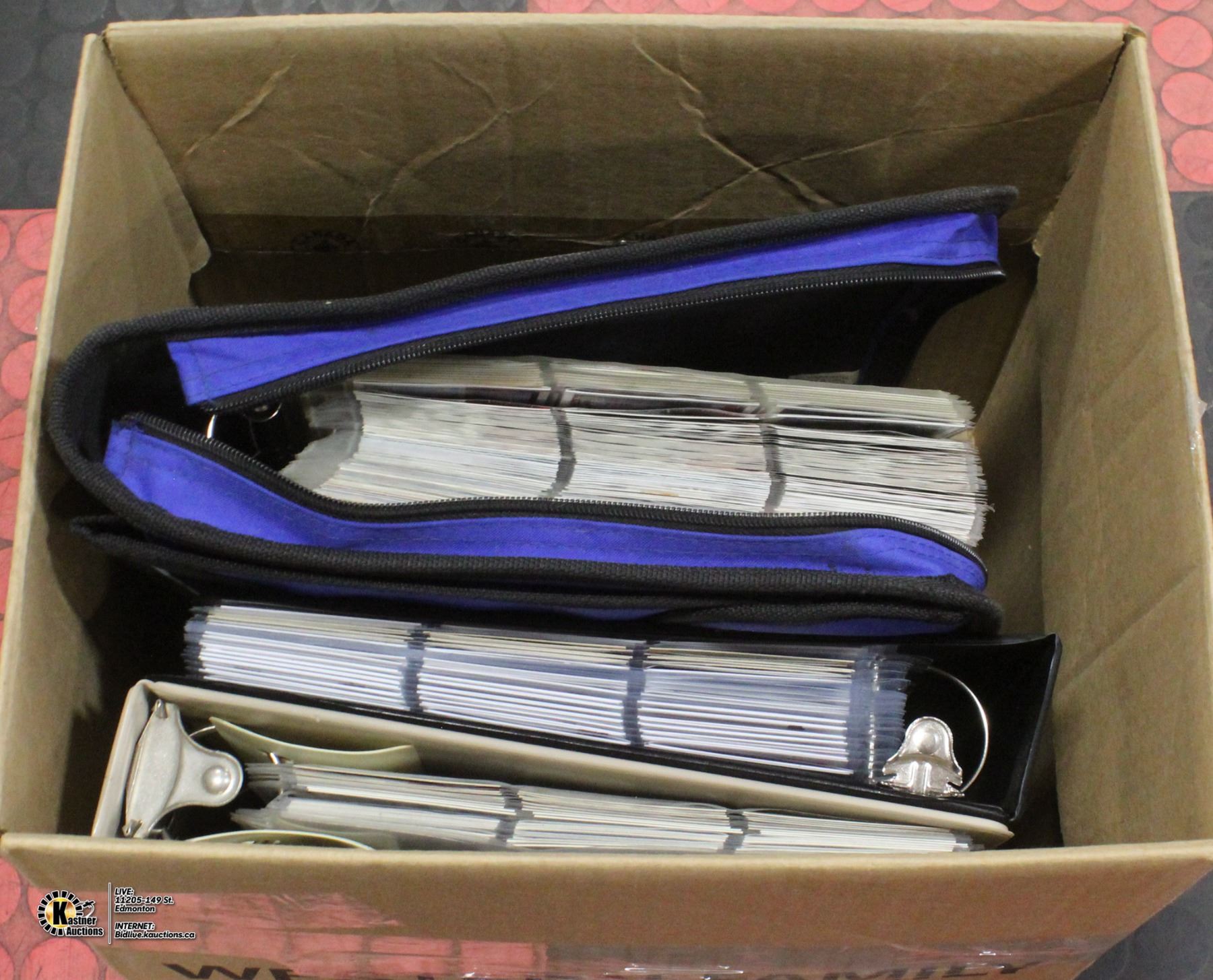 BOX OF BINDERS WITH SPORTS CARDS