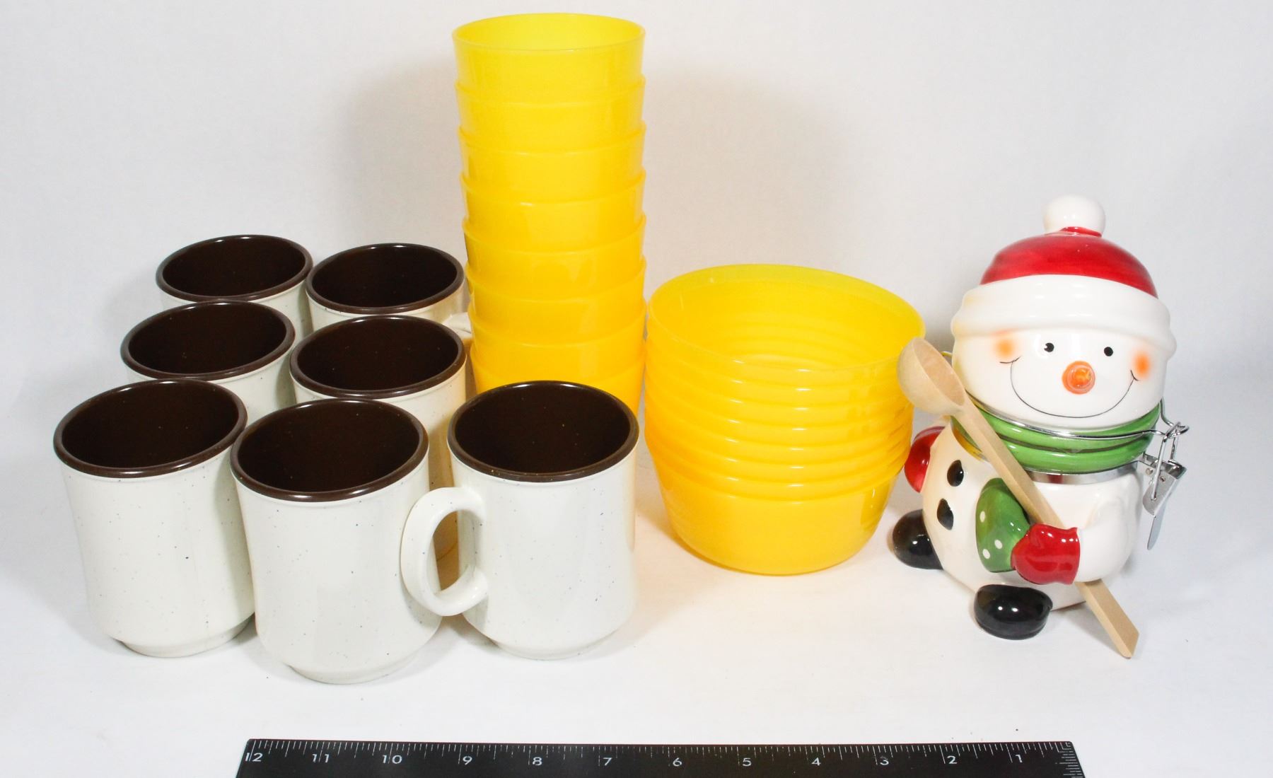 DISHWARE (MARKED DISHWASHER SAFE), AND SNOW MAN JAR