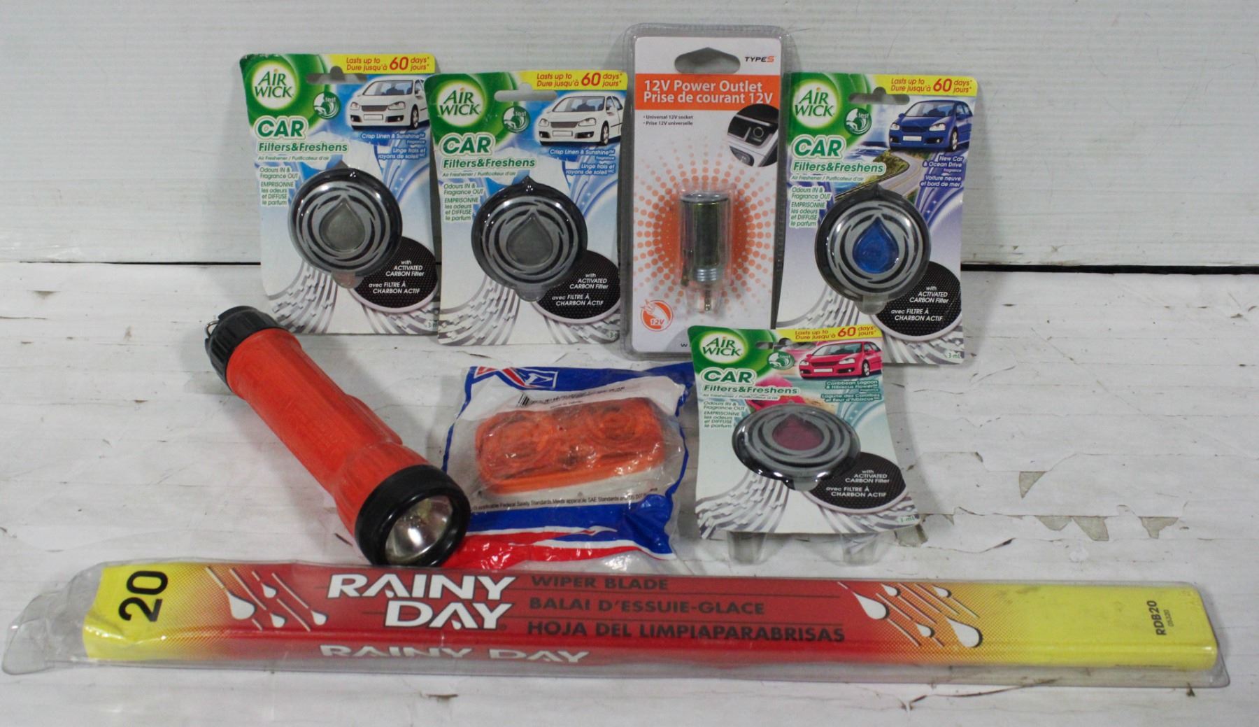 BOX OF CAR FRESHENER WIPER BLADES & POWER OUTLET