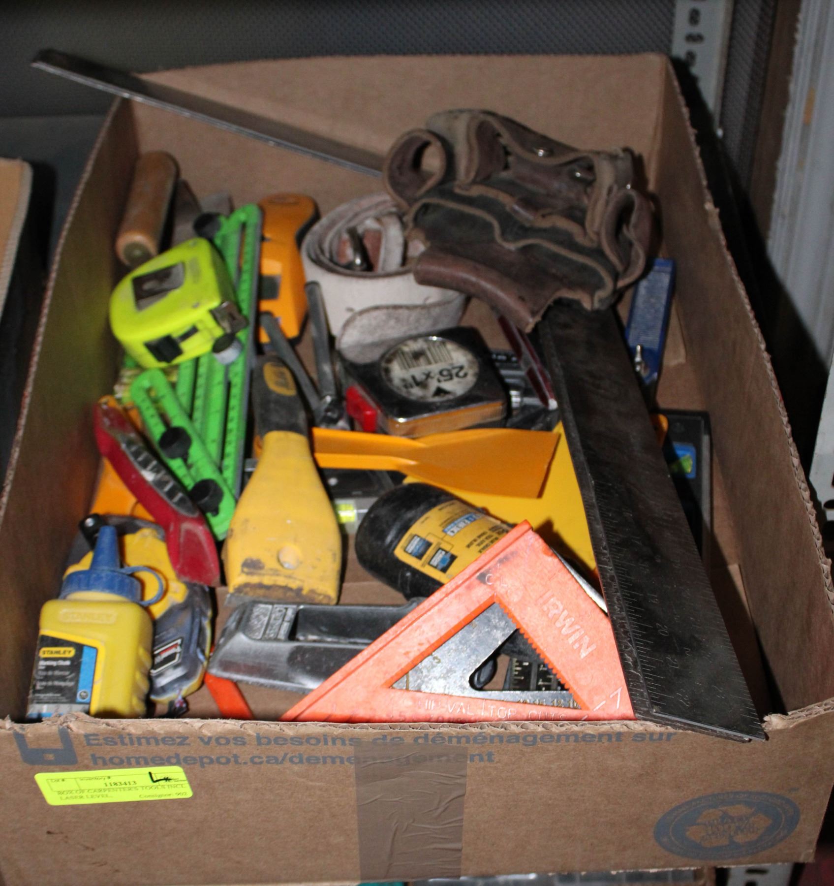 SPEED SQUARES, LARGE SQUARES, SNAPLINE WITH CHALK, SCRAPER SET, LEVELS MEASURING TAPES, TOOL POUCH WITH LEATHER BELT, ETC. **ALL ITEMS MUST BE REMOVED BY 5PM SATURDAY, MARCH 8TH 2025. ALL REMAINING ITEMS WILL BE SUBJECT TO A $6.00 PER DAY STORAGE CHARGE. ANY ITEMS REMAINING AFTER MONDAY, MARCH 24TH 2025 WILL BE CONSIDERED FORFEITED. NO REFUNDS WILL BE ISSUED FOR FORFEITED ITEMS. TO SCHEDULE A PICK UP APPOINTMENT CLICK HERE