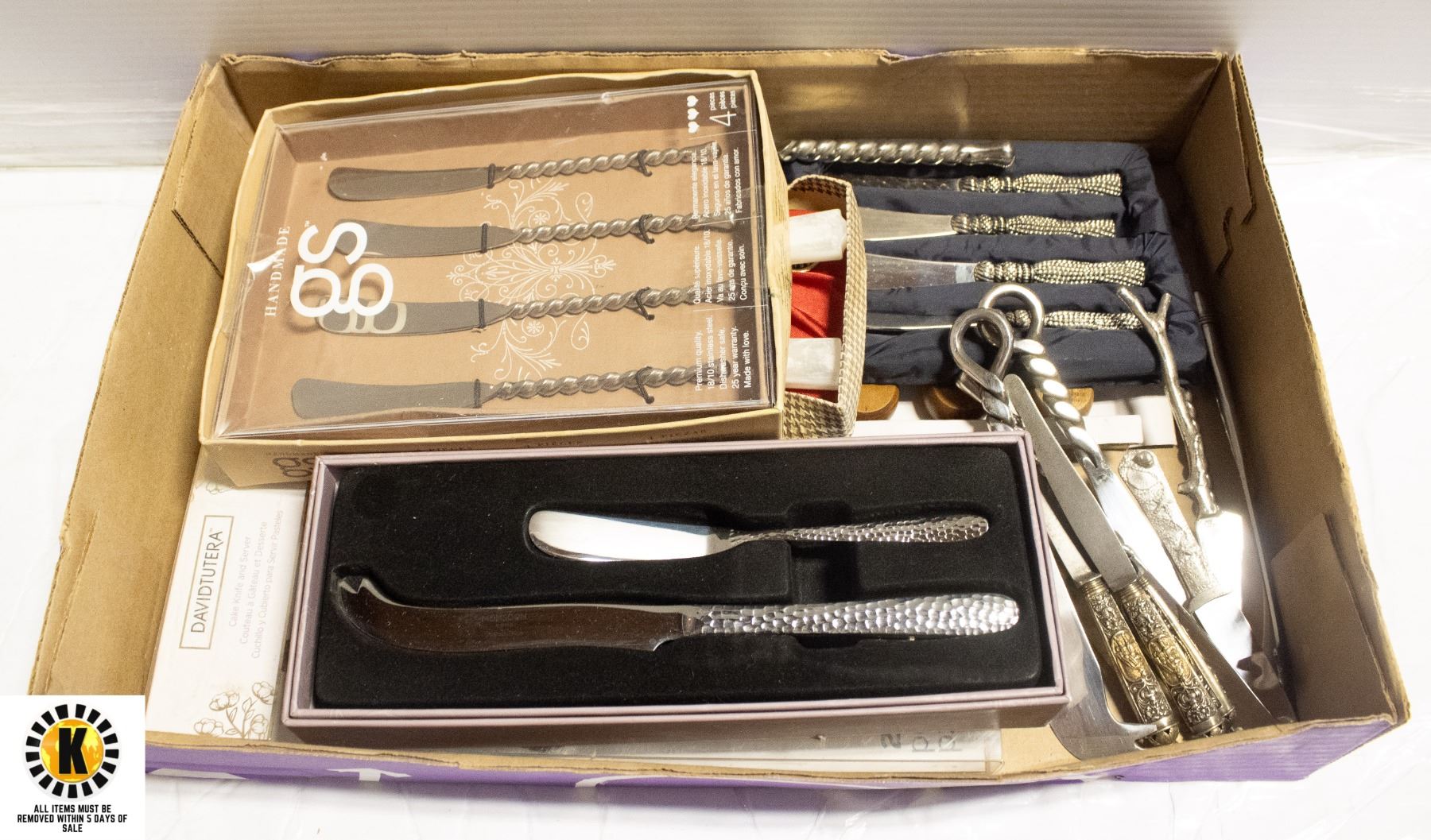 BOX OF CHEESE AND CAKE KNIVES