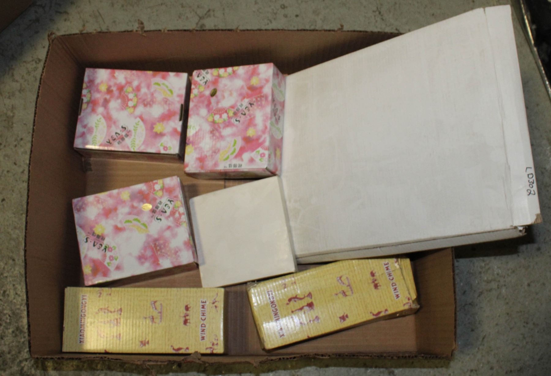 BOX OF CHIMES, GONGS, AND DECOR ITEMS EACH BOX WAS