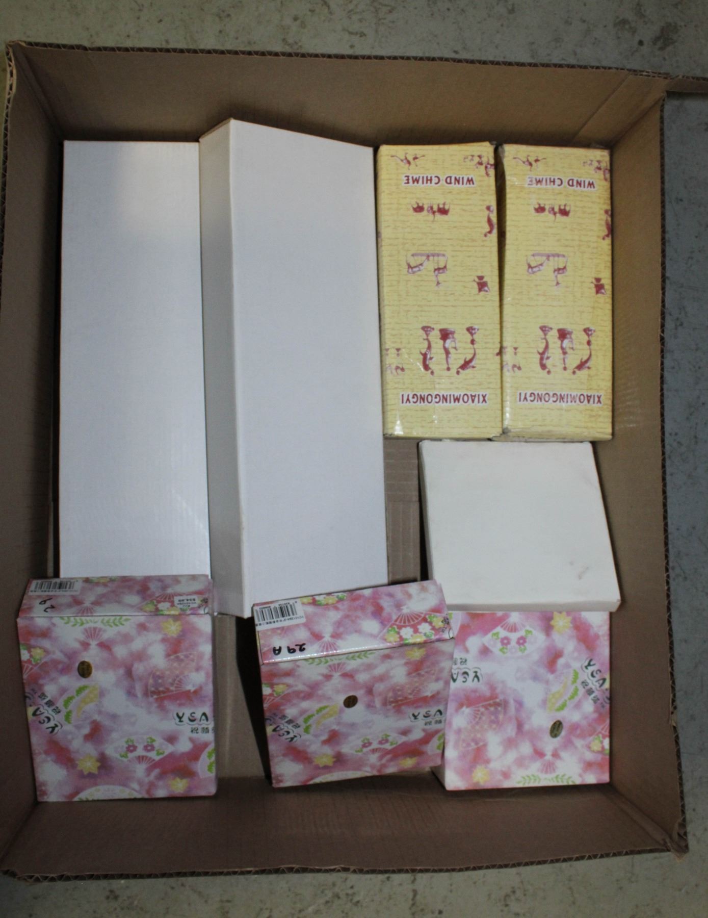 BOX OF CHIMES, GONGS, AND DECOR ITEMS EACH BOX WAS
