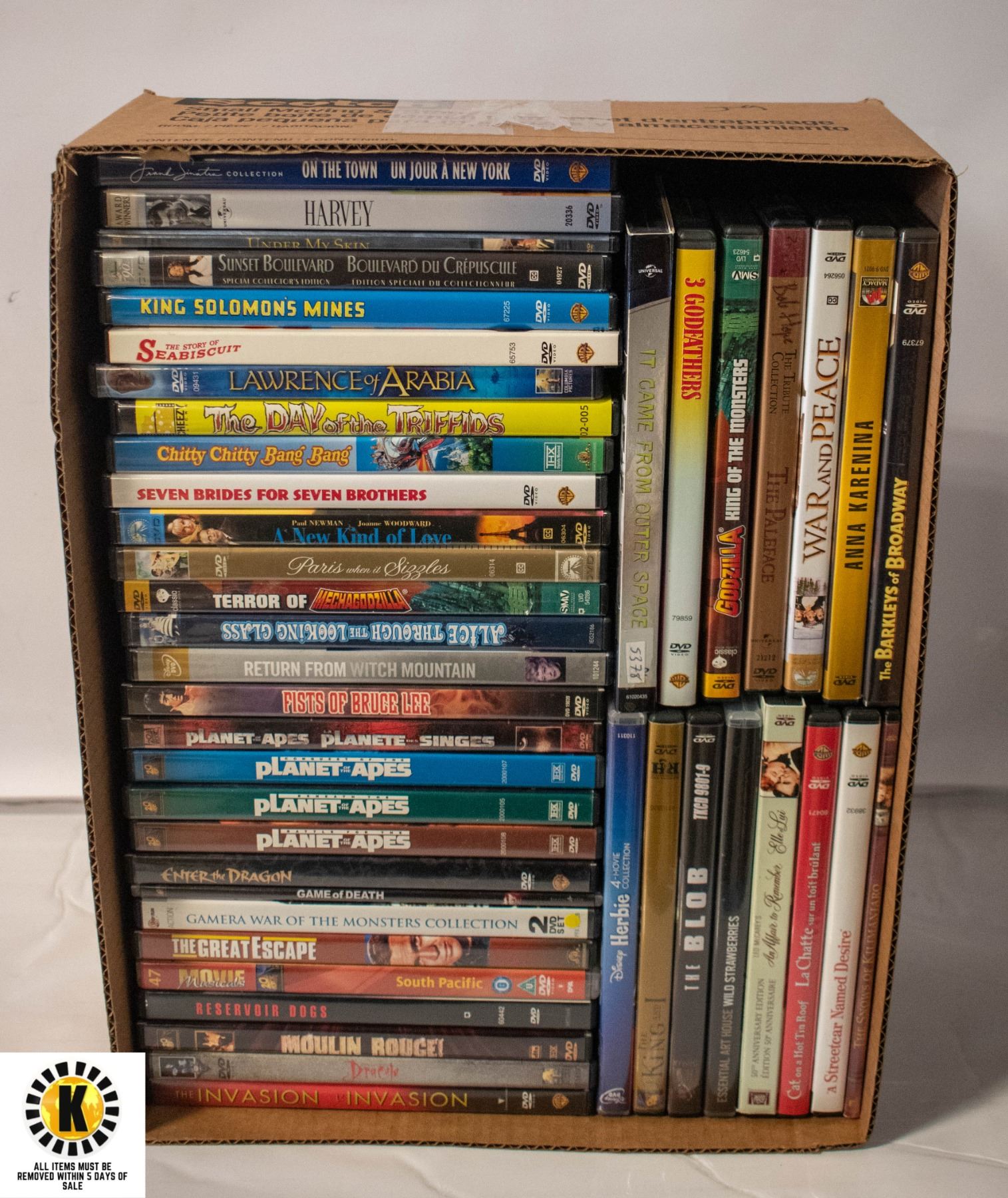 ESCAPE, PLANET OF THE APES SERIES (4), BRUCE LEE MOVIES, CHITTY CHITTTY BANG BANG, HERBIE (4 MOVIE COLLECTION), THE KING & I, BOB HOPE, JOHN WAYNE DVDS & MUCH MORE (TOTAL OF 47)