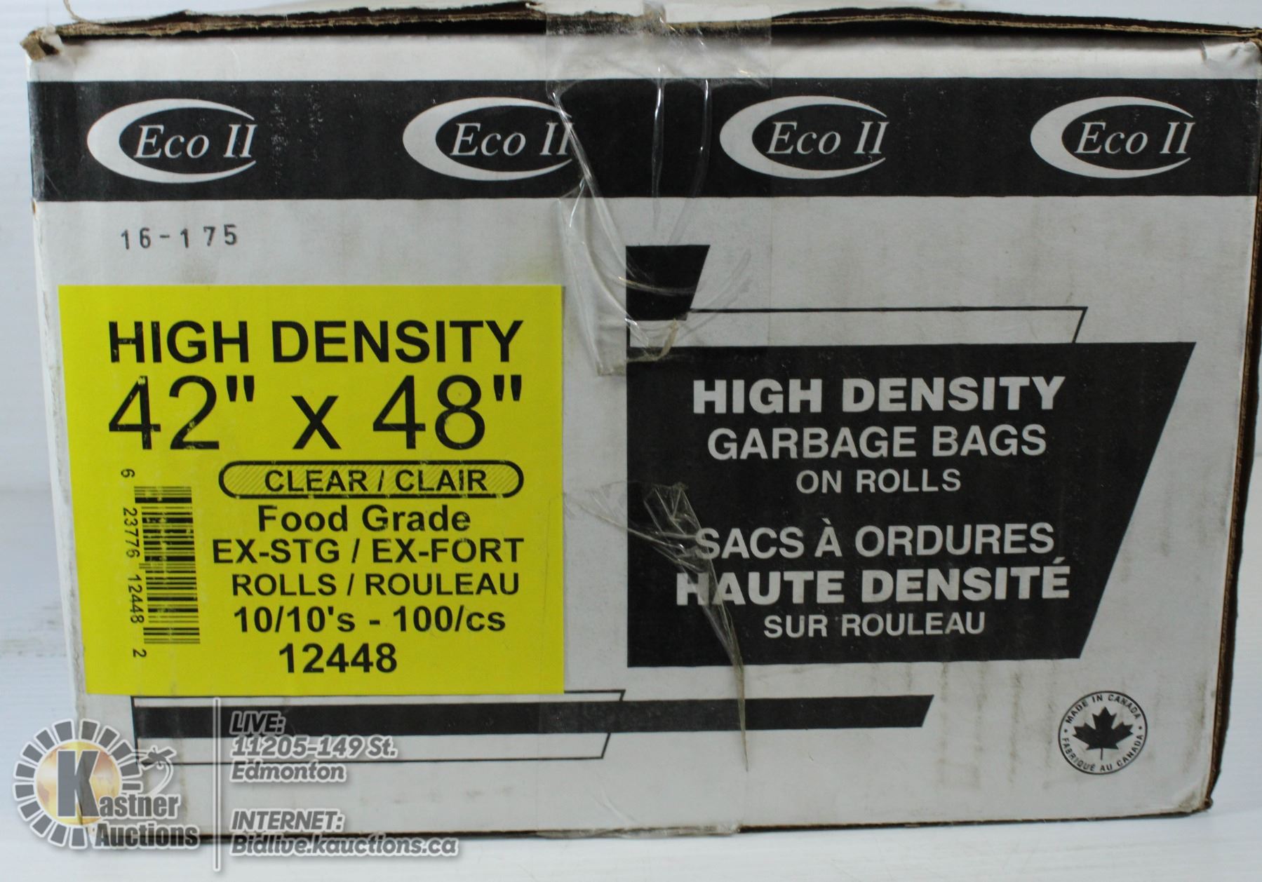 BOX OF CLEAR HIGH DENSITY GARBAGE BAGS 42" X 48"