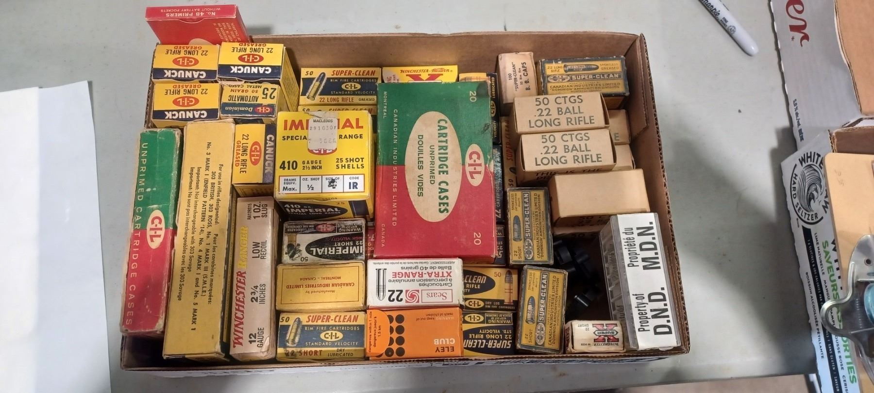 BOX OF COLLECTABLE AMMO BOXES SEE PHOTO FOR DETAILS