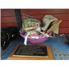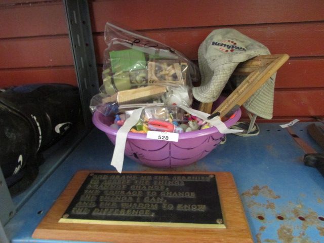 BOX OF COLLECTABLE MINITURES, PUZZLES, SERENITY PLAQUE & HAT