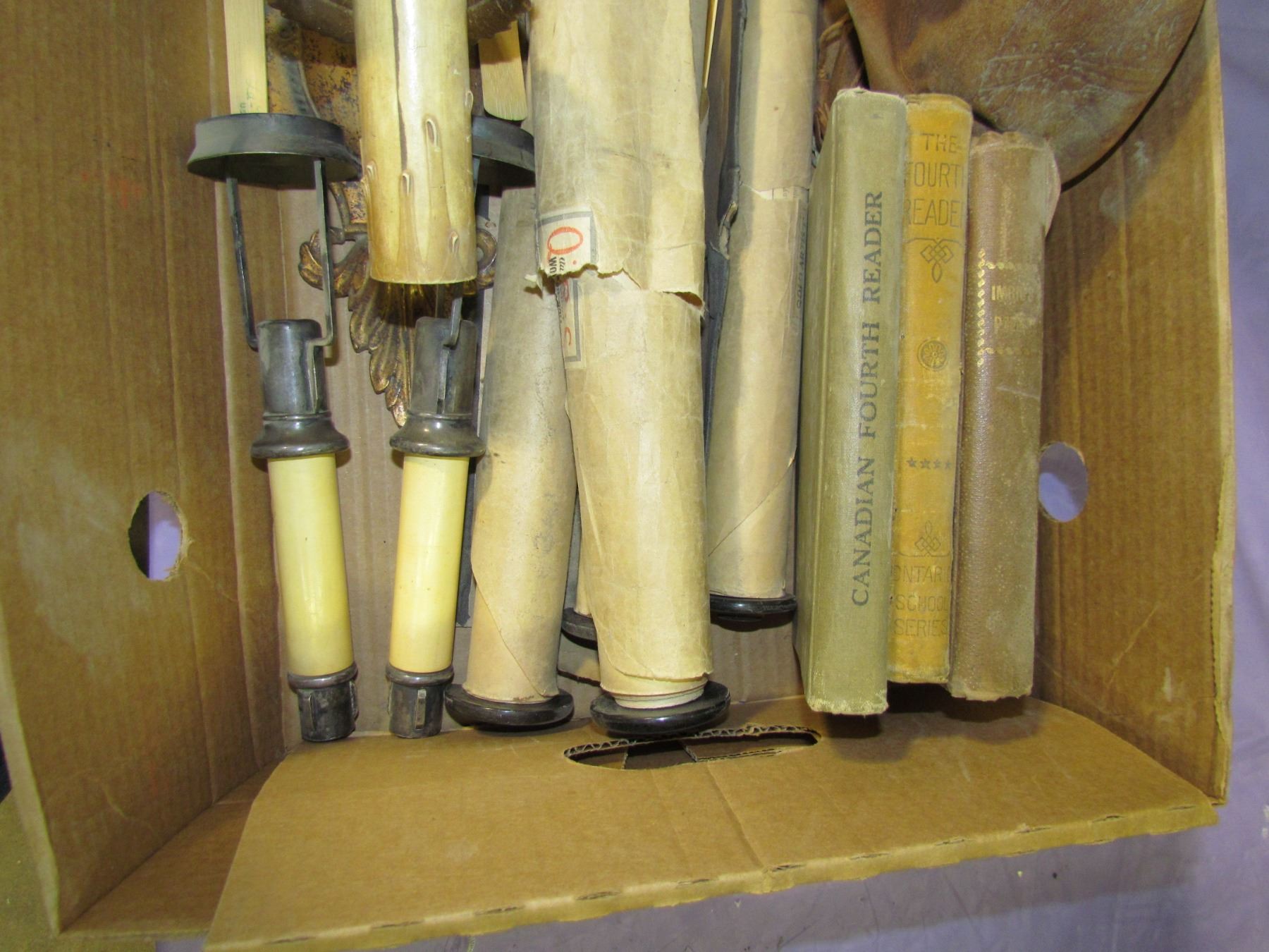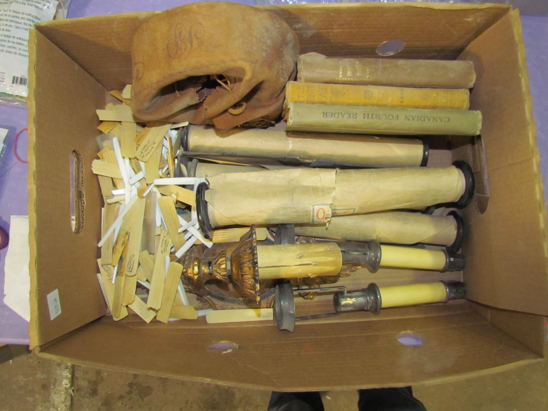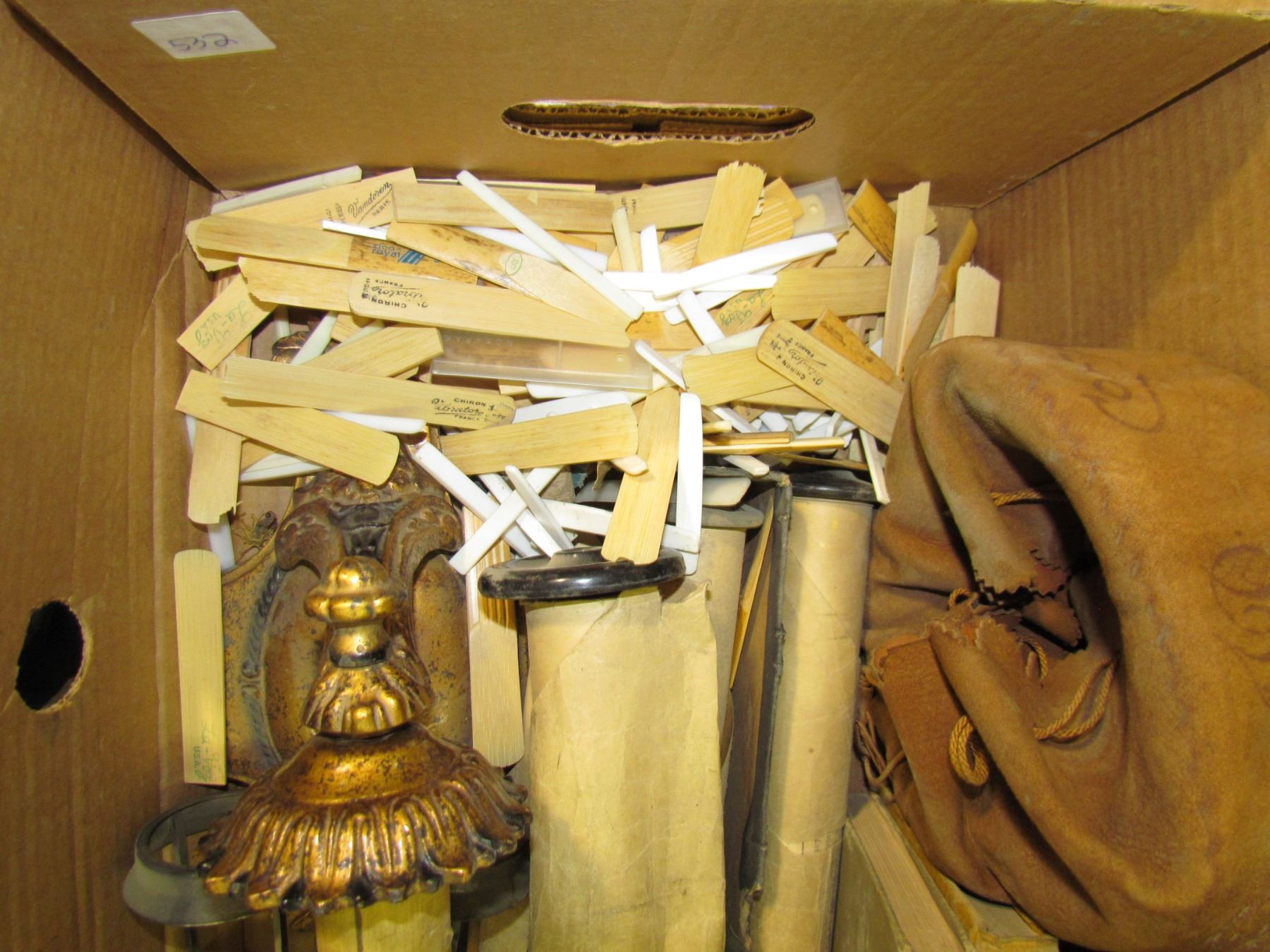 BOX OF COLLECTABLES (REEDS, COLLARS, PIANO ROLLS)
