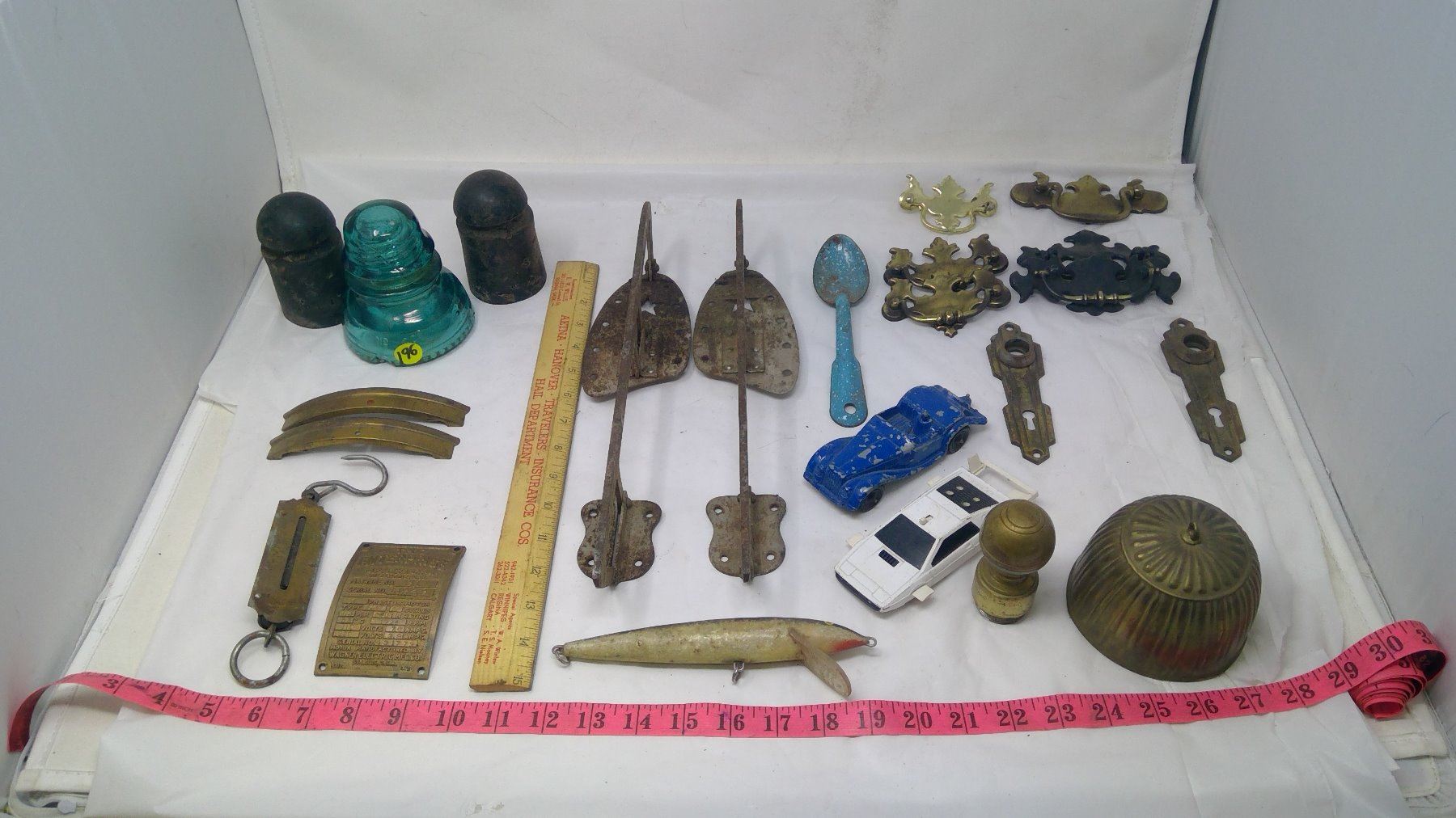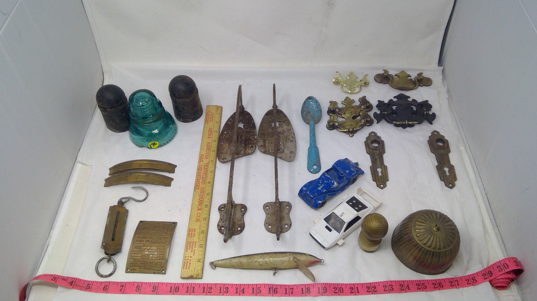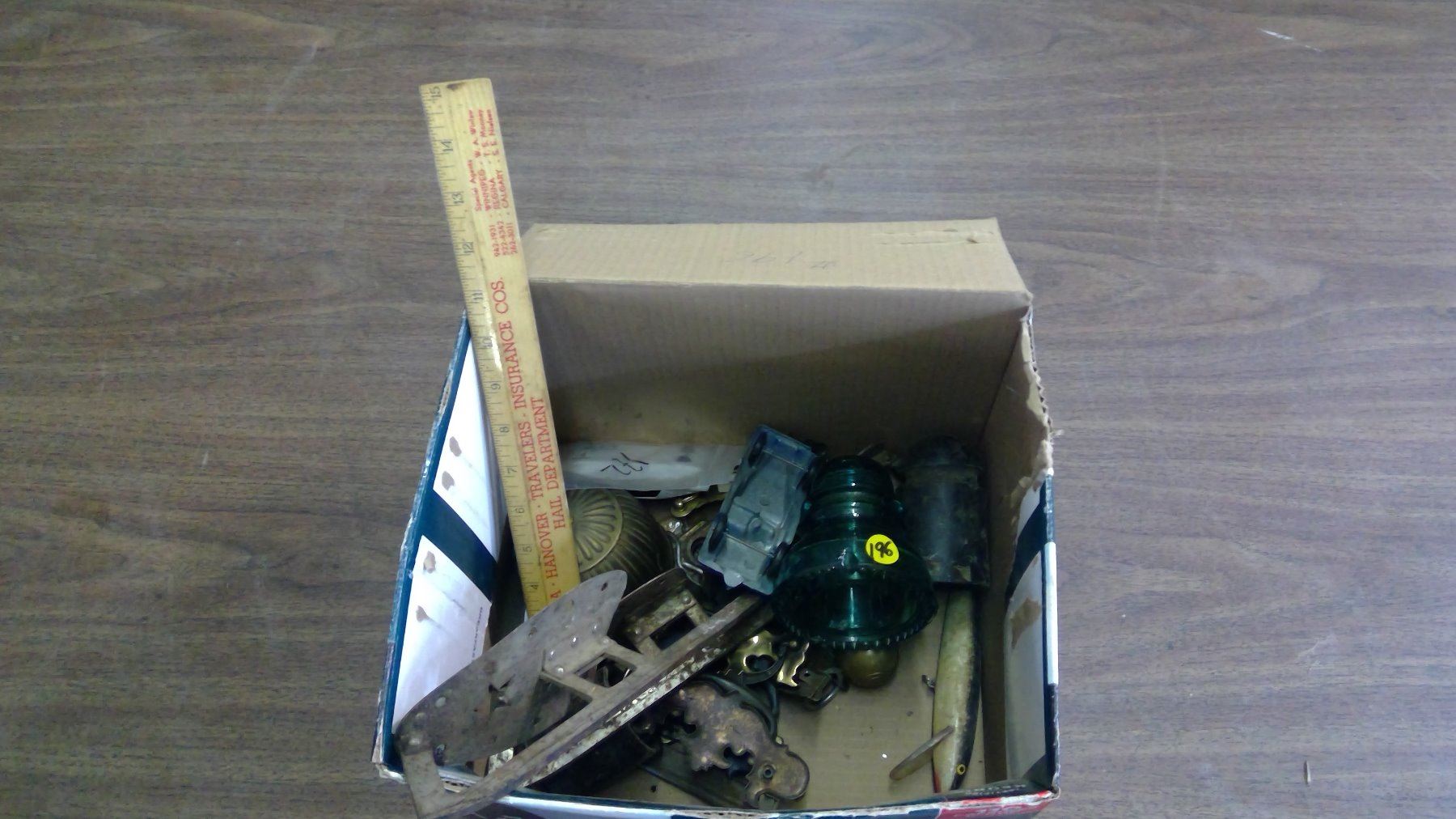 BOX OF COLLECTIBLES- INSULATORS,HARDWARE SKATES,ETC.
