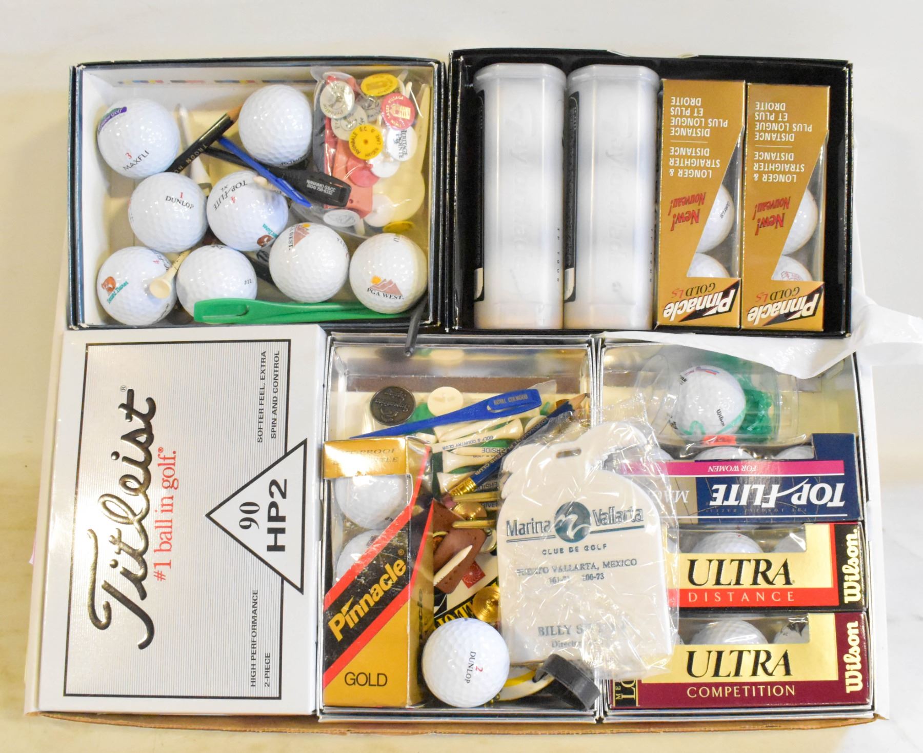 BOX OF COLLECTOR GOLF BALLS AND ACCESSORIES