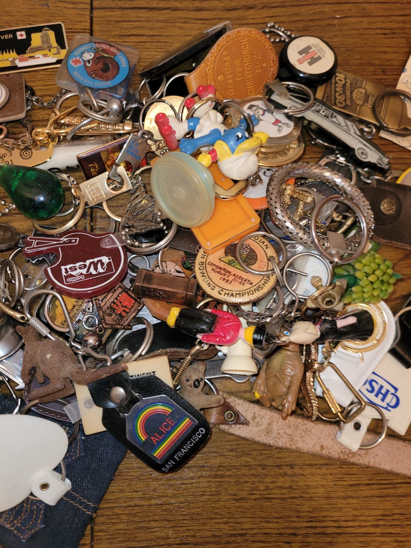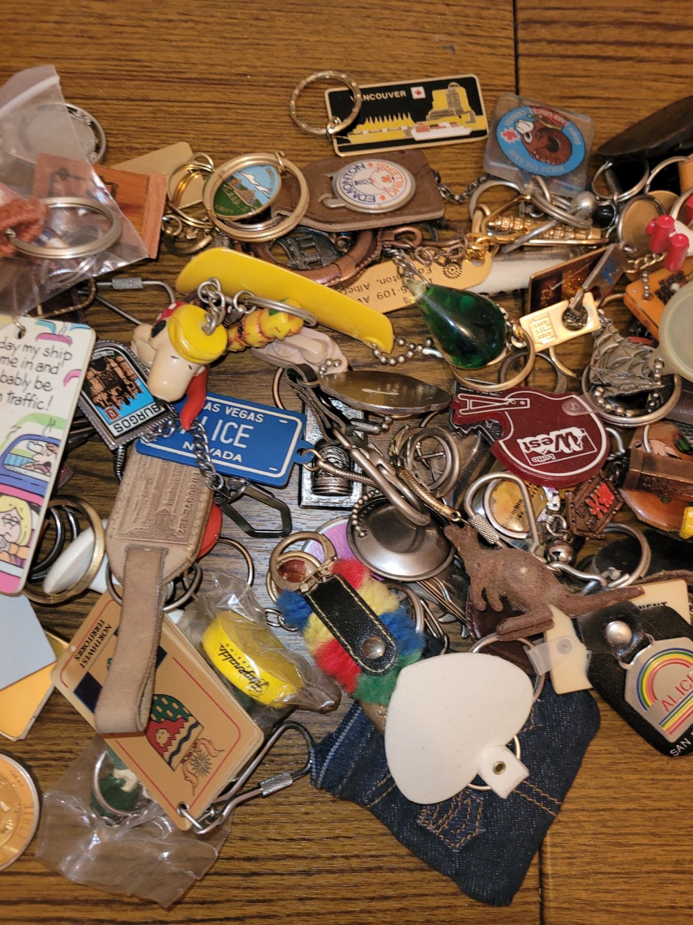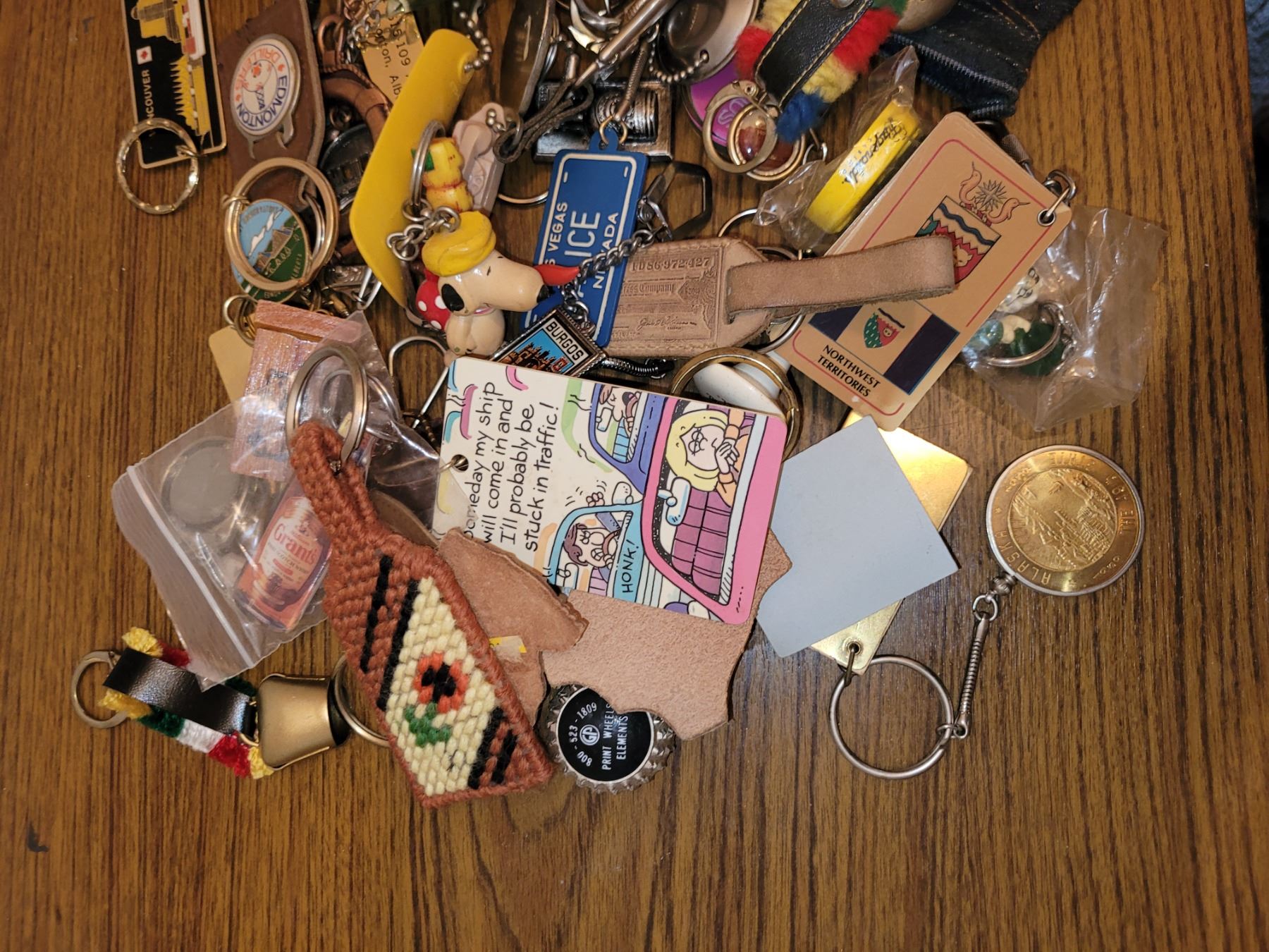 SHE'S BEEN COLLECTING FOR YEARS...SHE IS NOW 90. THAT'S A LOT OF KEYCHAINS! SEE PICTURES