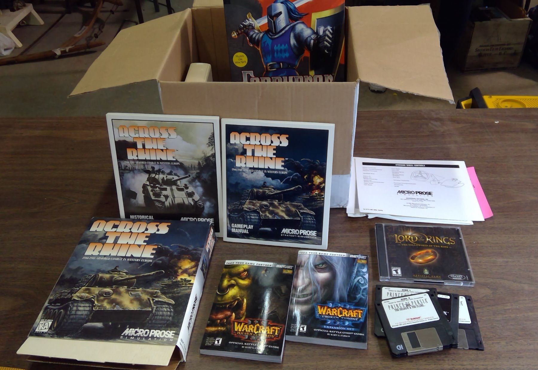BOX OF COMPUTER GAMES, MANUALS, OPERATING SYSTEMS, ETC.