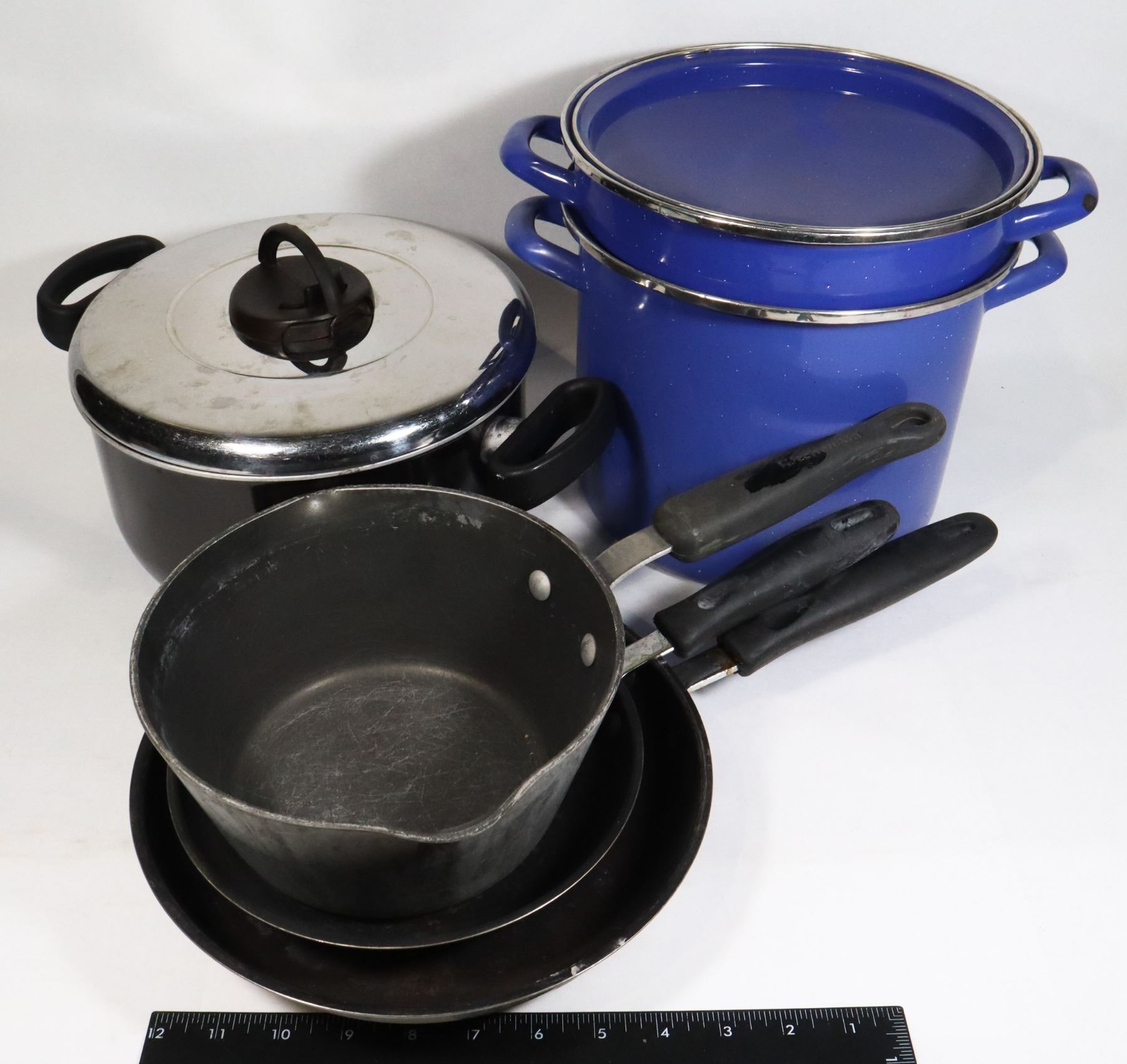 BLUE ENAMELED STRAINER POT, AND MORE