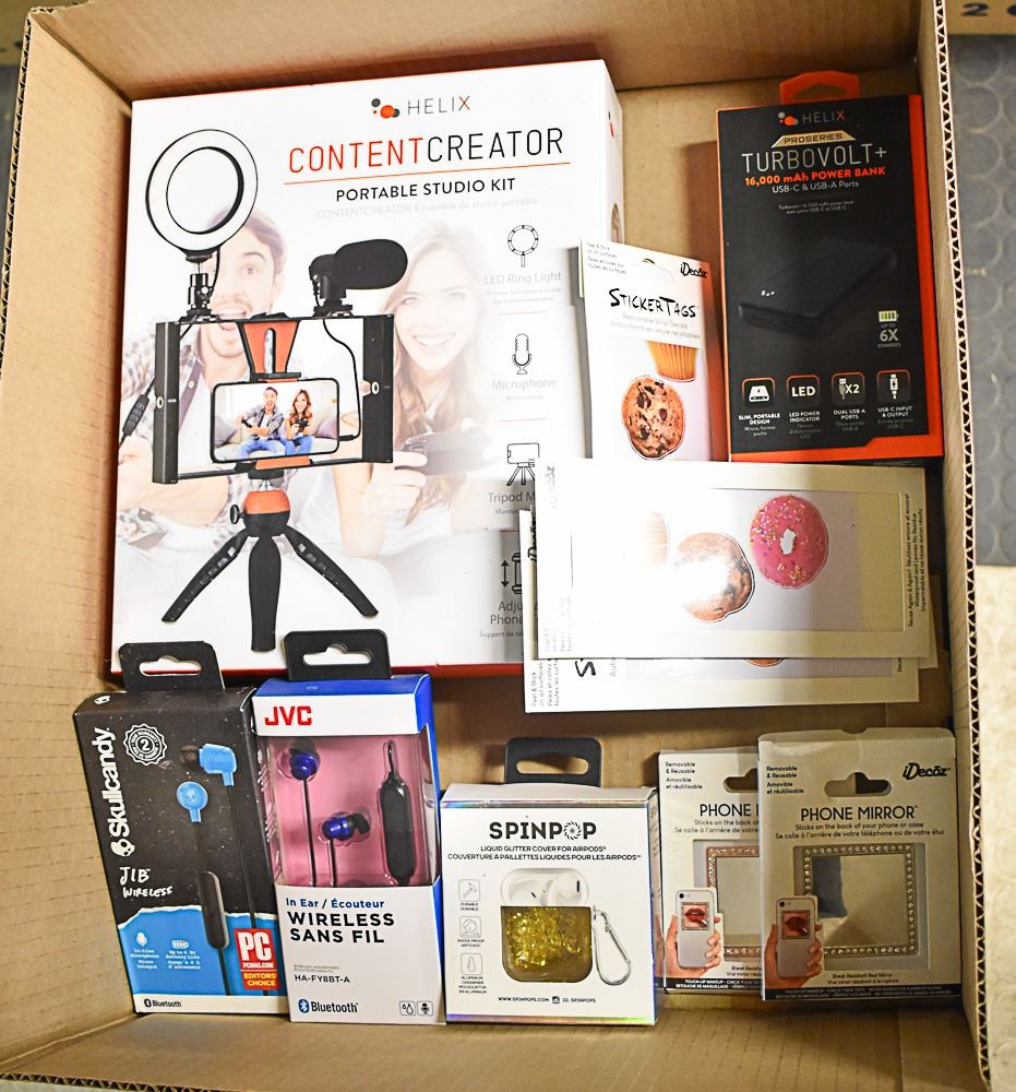 BOX OF CREATOR CONTENT AND HEADPHONES LOT