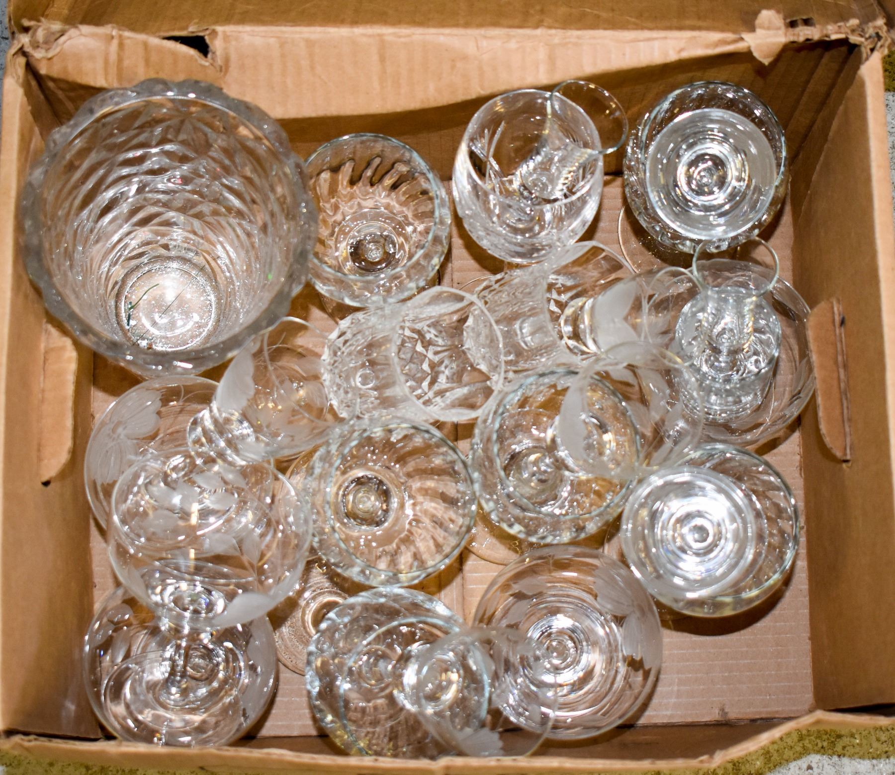 BOX OF CRYSTAL WINE GLASSES - VARIOUS SIZES