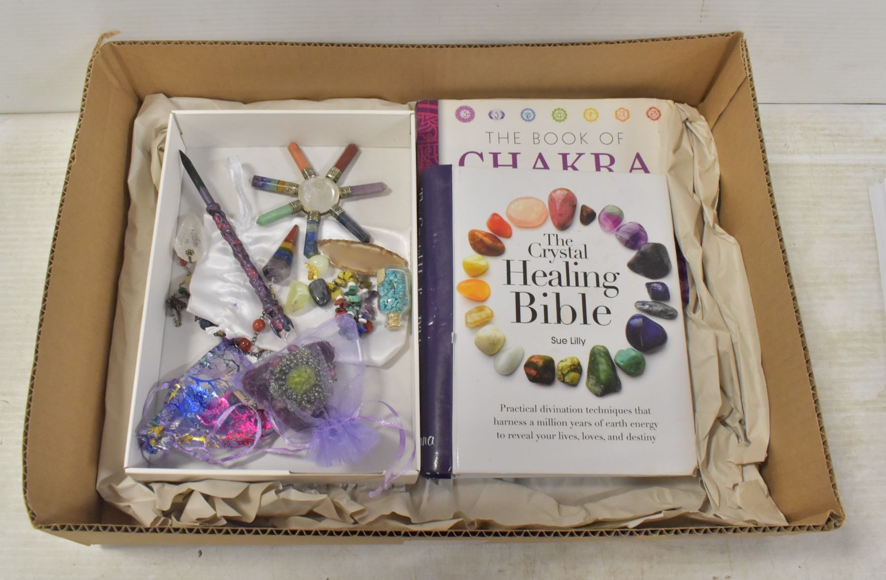 BOX OF CRYSTALS, SWING PENDANTS AND