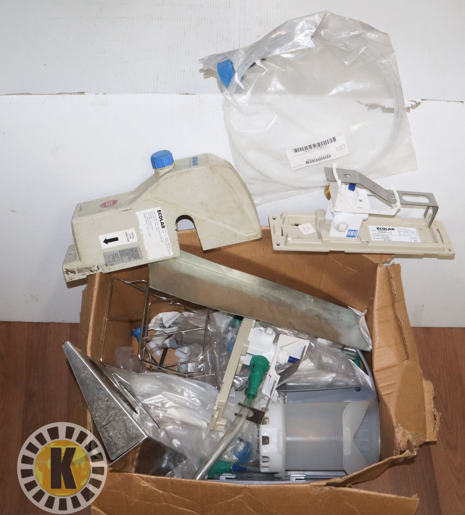 BOX OF ECOLAB SOAP DISPENSER PARTS
