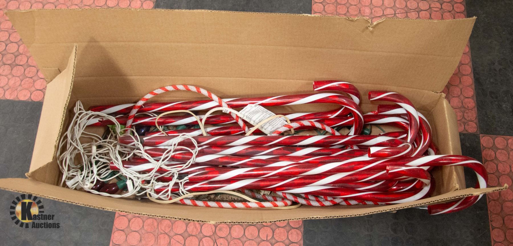 BOX OF ELECTRIC CANDY CANES, LIGHTS AND MORE