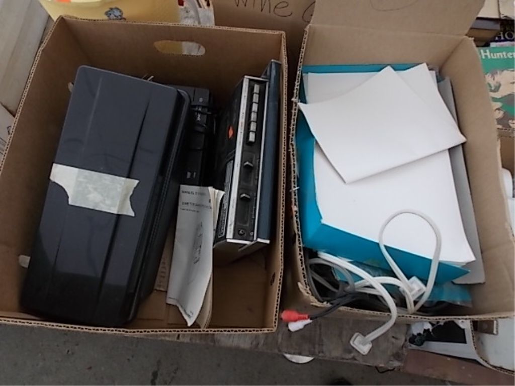 BOX OF ELECTRONICS AND BOX OF PAPER AND CORDS