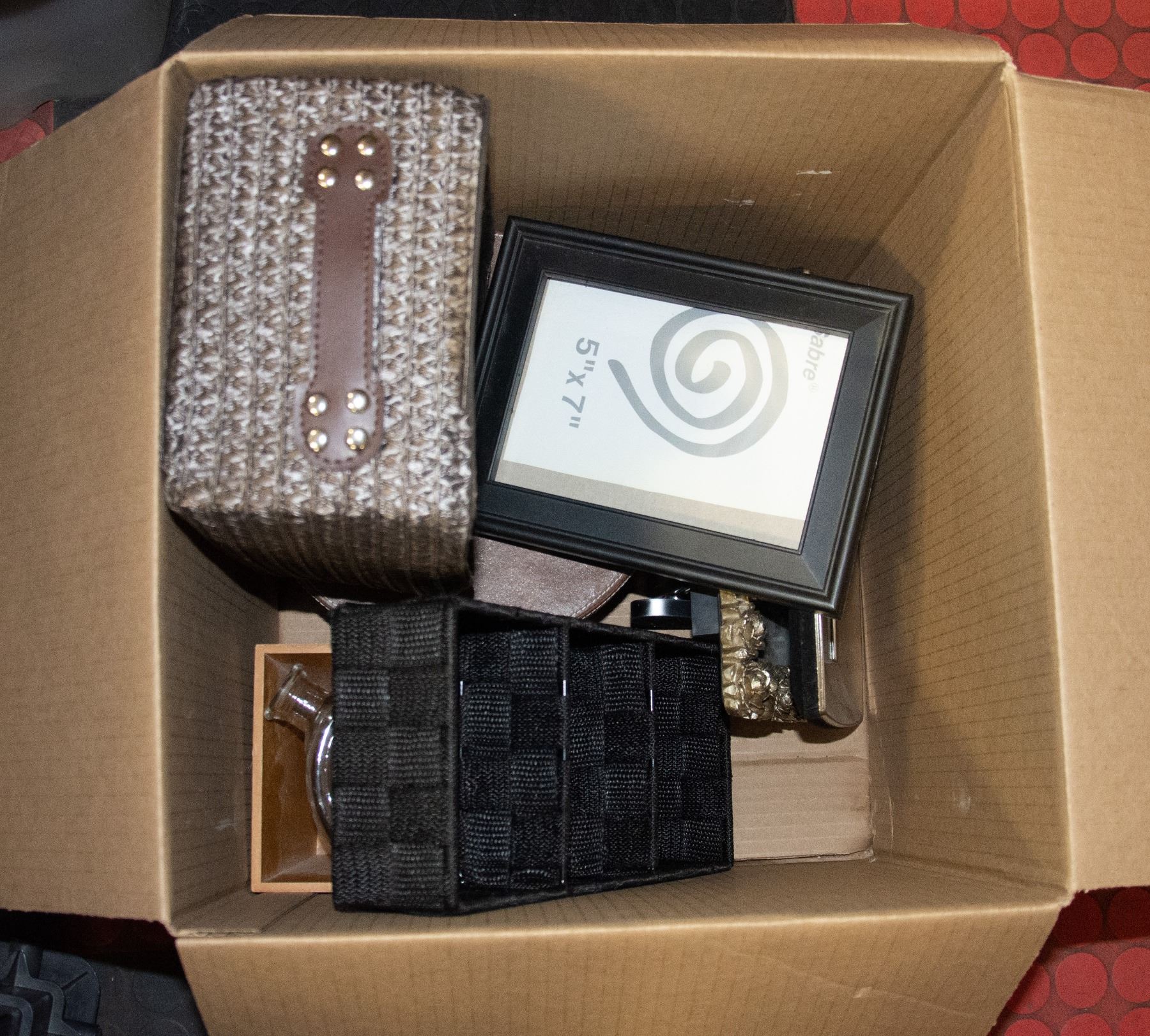 BOX OF ESTATE DECOR; PICTURE FRAMES/ BOXES, ETC