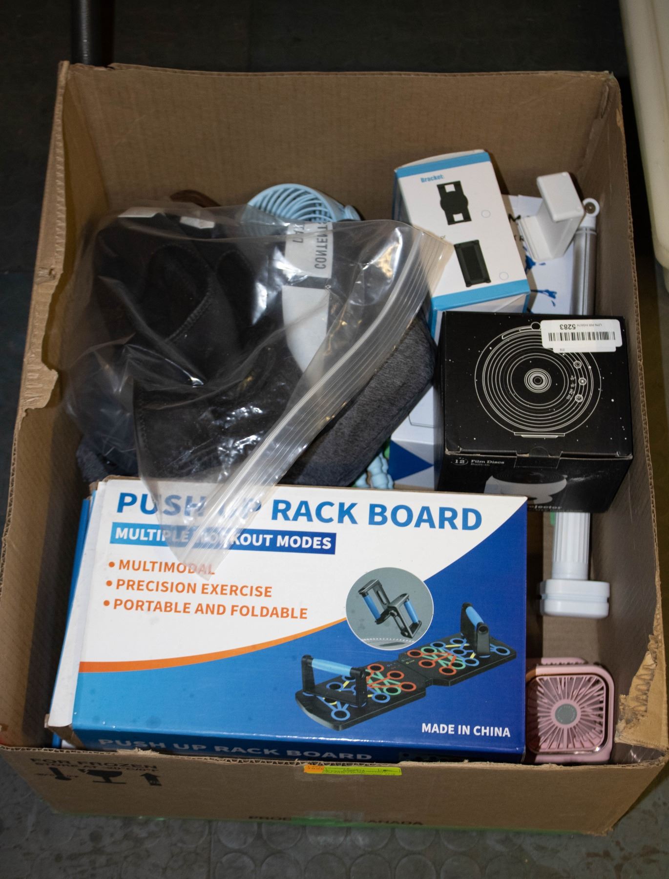 BOX OF EXERCISE EQUIPMENT, HEALTH AIDS + MORE.