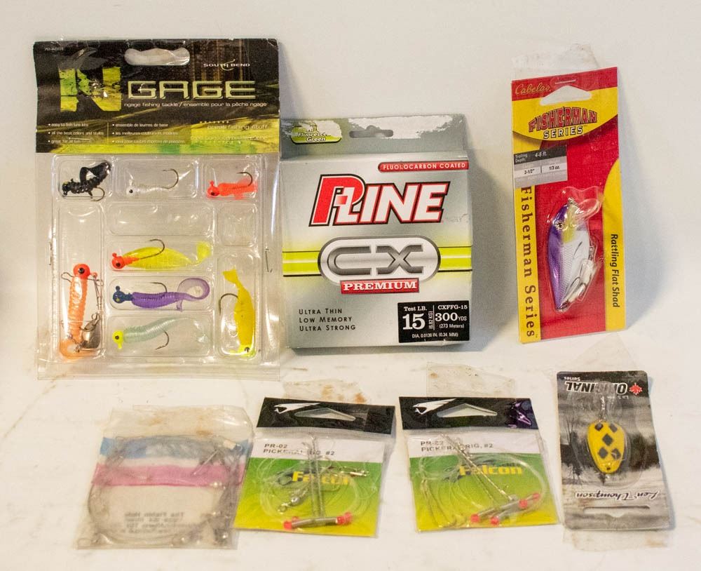 BOX OF FISHING HOOKS, P LINE 15 LBS TEST