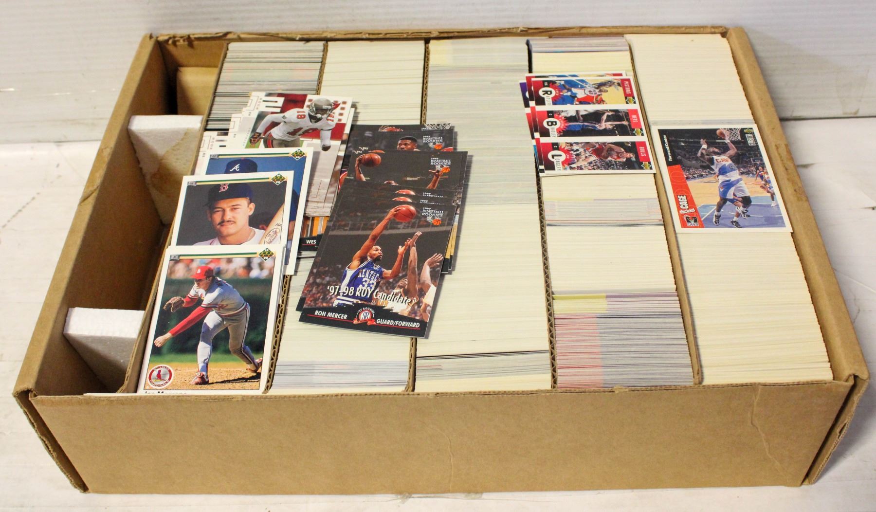 BOX OF FOOTBALL, BASEBALL AND BASKETBALL CARDS