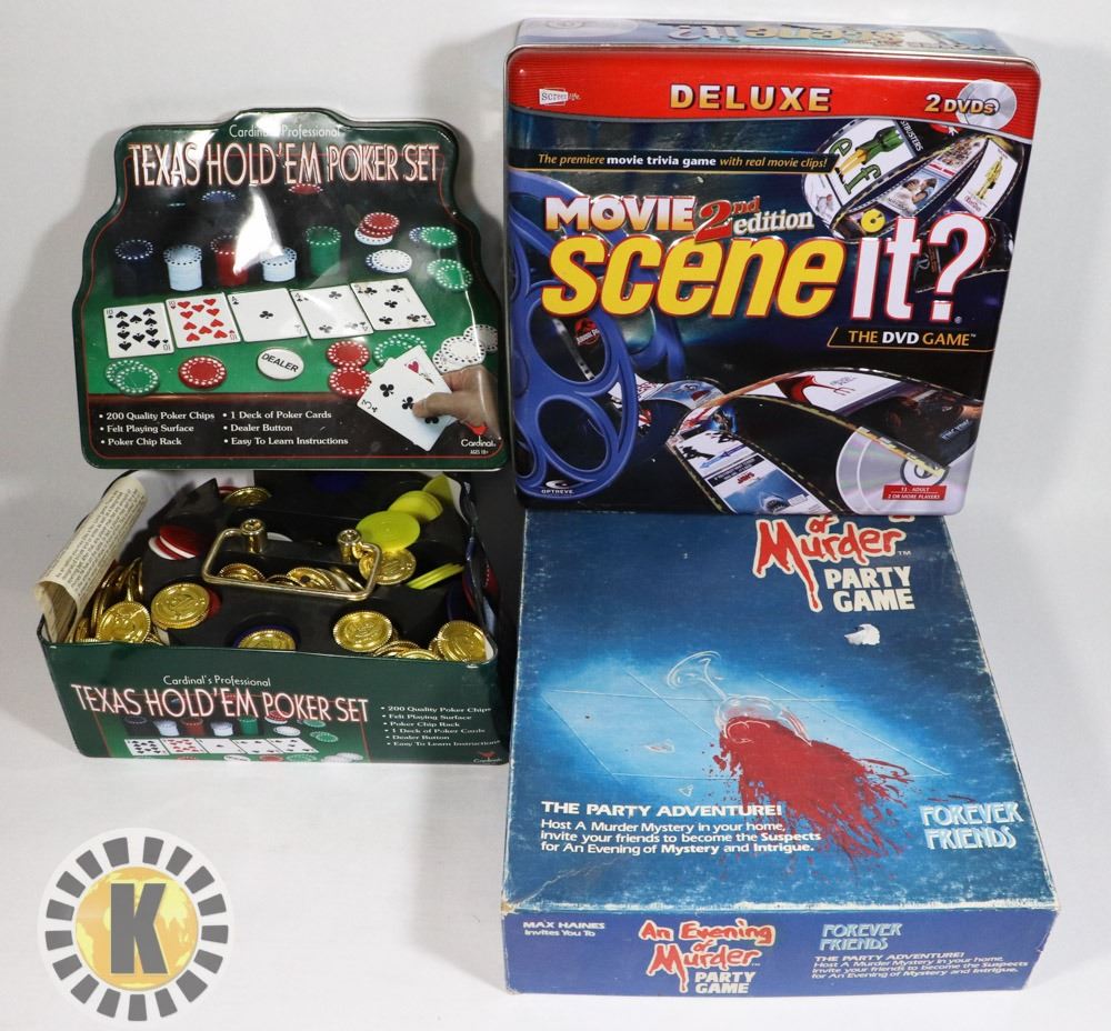 BOX OF GAMES INCLUDING POKER, SCENE IT,