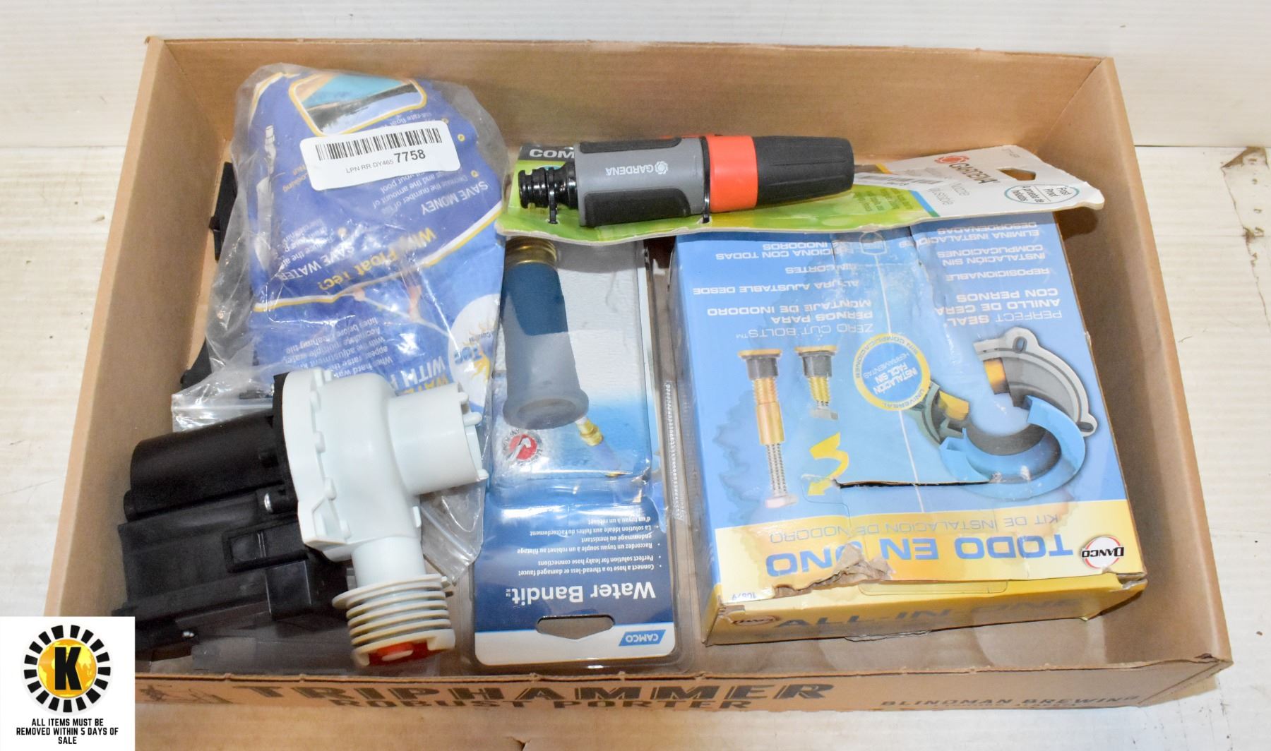 BOX OF GARDEN AND PLUMING SUPPLIES