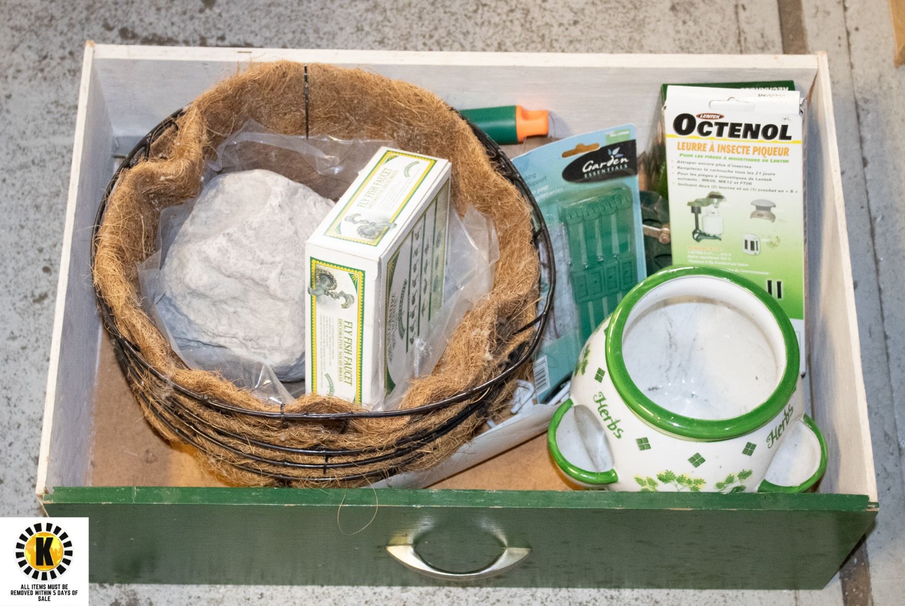 TOOLS, , SOLID BRASS FLY FISH FAUCET, OCTENOL INSECT CARTRIDGE, VINTAGE GRASS CLIPPERS, HERB POT, NEW RESIN GARDEN ORNAMENT, THERMACELLMOSQUITO REFILL