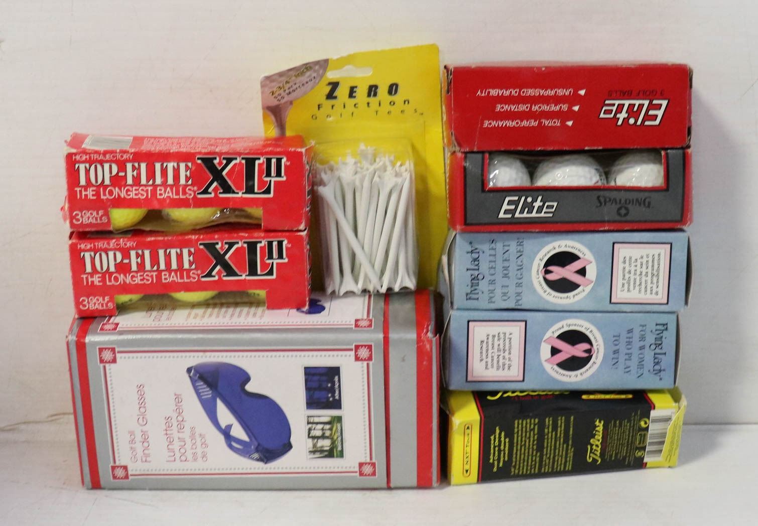 BOX OF GOLF BALLS /TEES/FINDER GLASSES