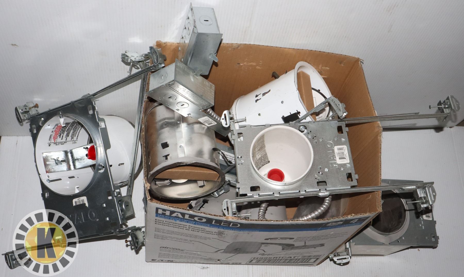 BOX OF HALO LIGHTS, NO BULBS, FIXTURES ONLY