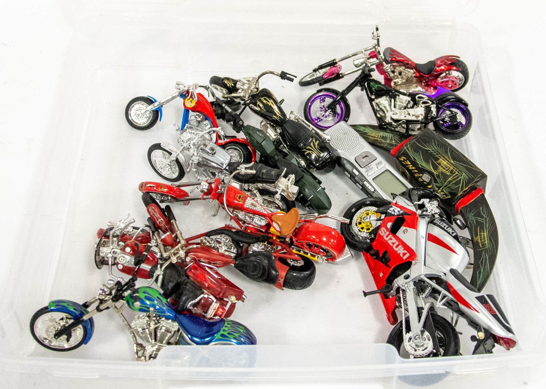 BOX OF HARLEY DAVIDSON DIECAST MOTORCYCLES & MORE