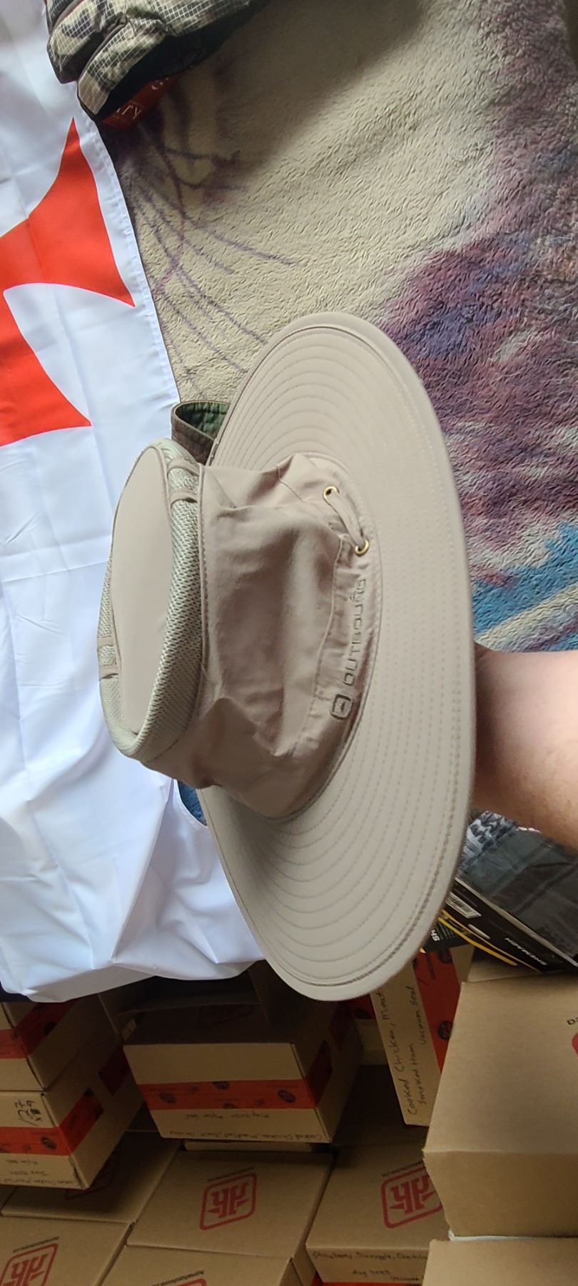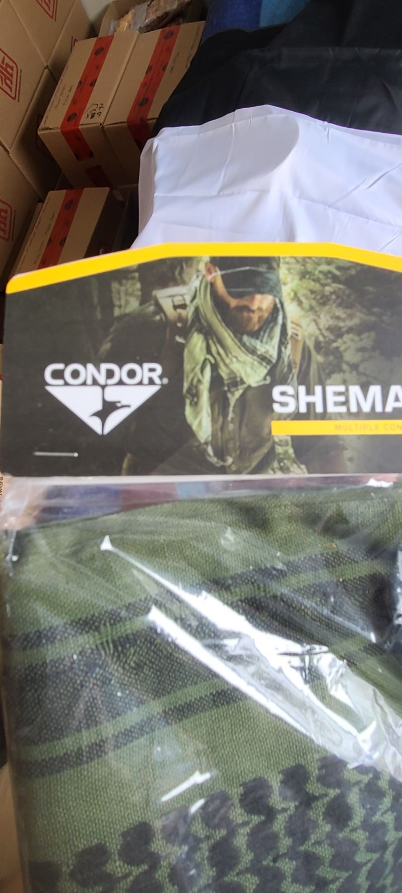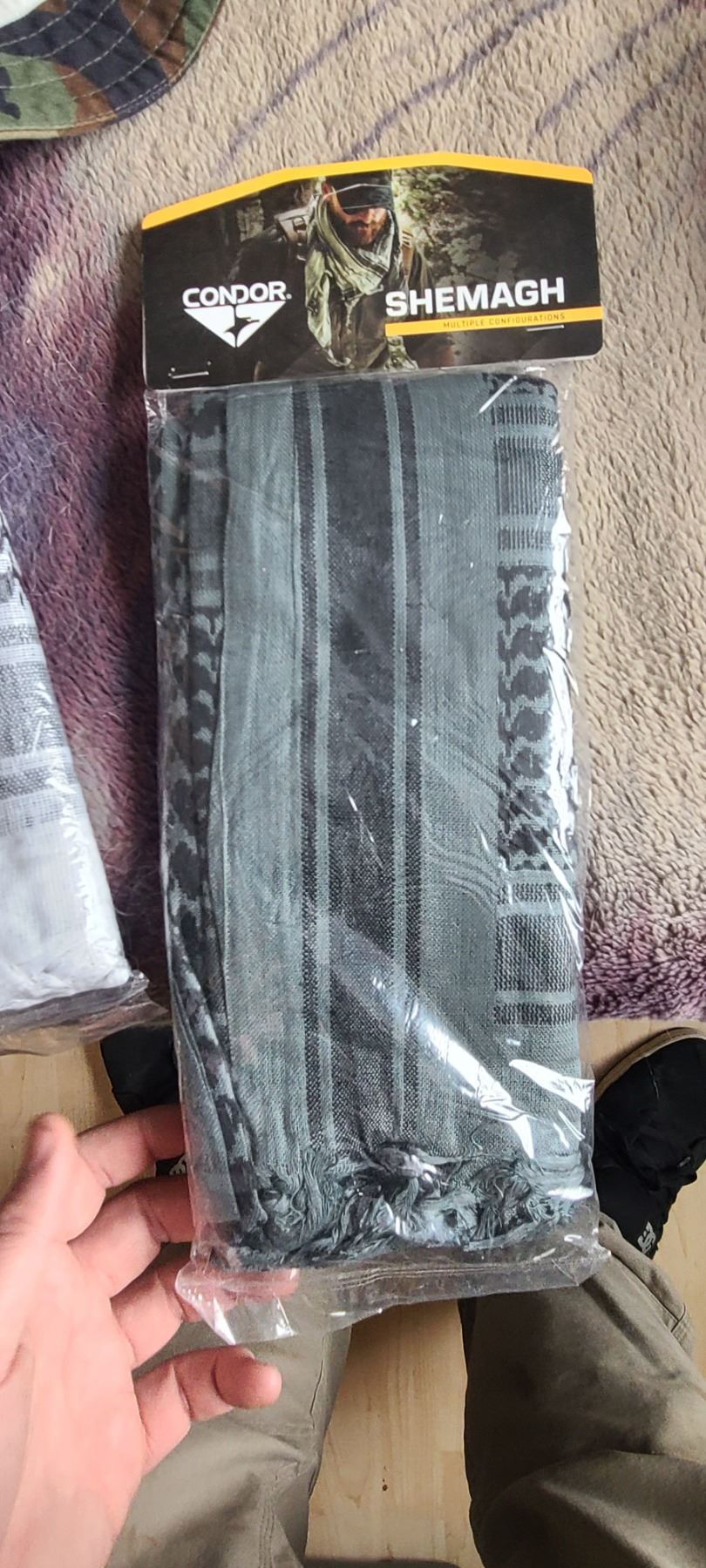 BOX OF HATS, GLOVES AND FOUR NEW SHEMAGH