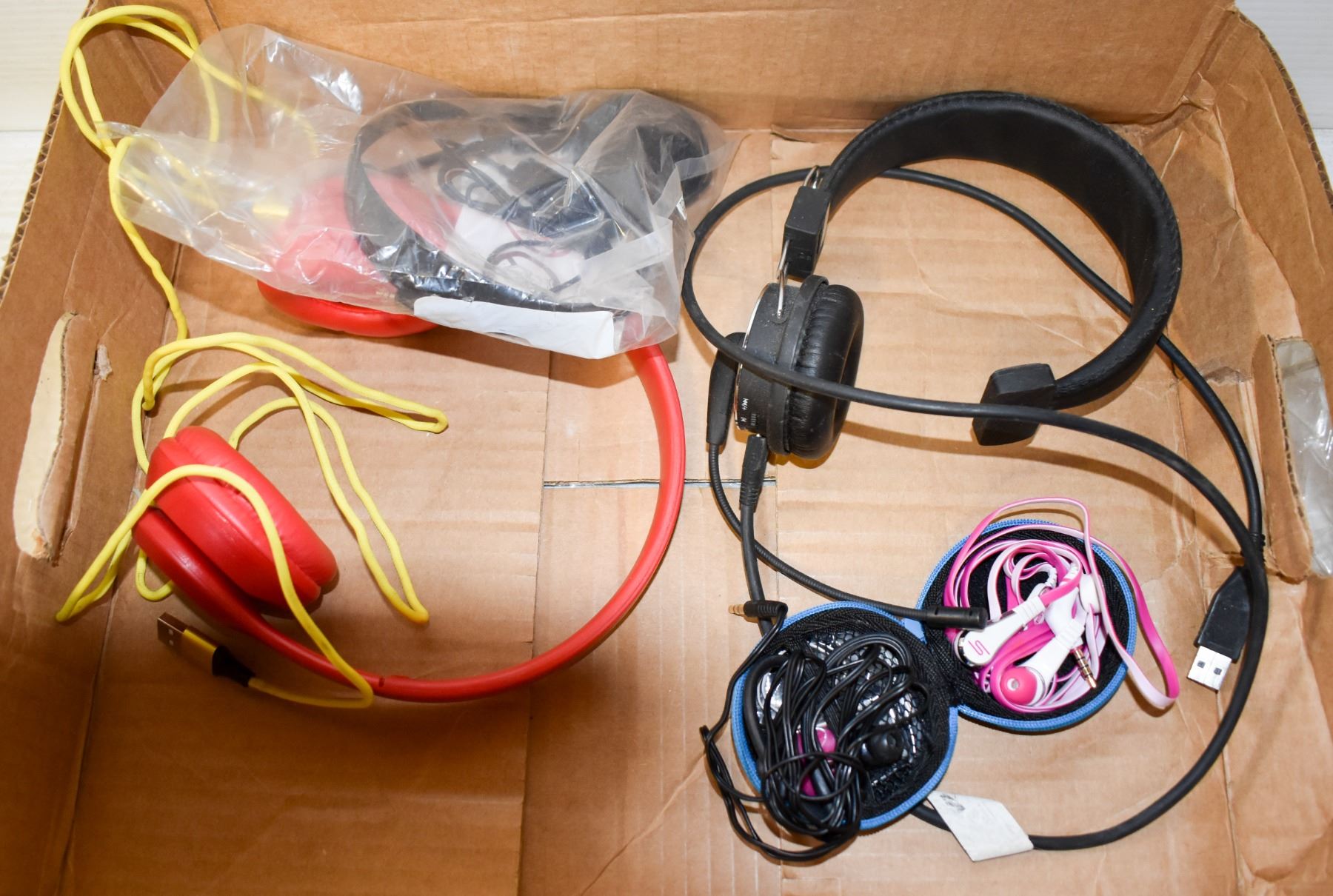 TIGER GAMING HEADPHONES WITH MIC., BUDWEISER HEADPHONES, NEW XBOX 360 GAMING HEADPHONES WITH MIC, SCOSCHE EARBUDS IN CASE, ETC.