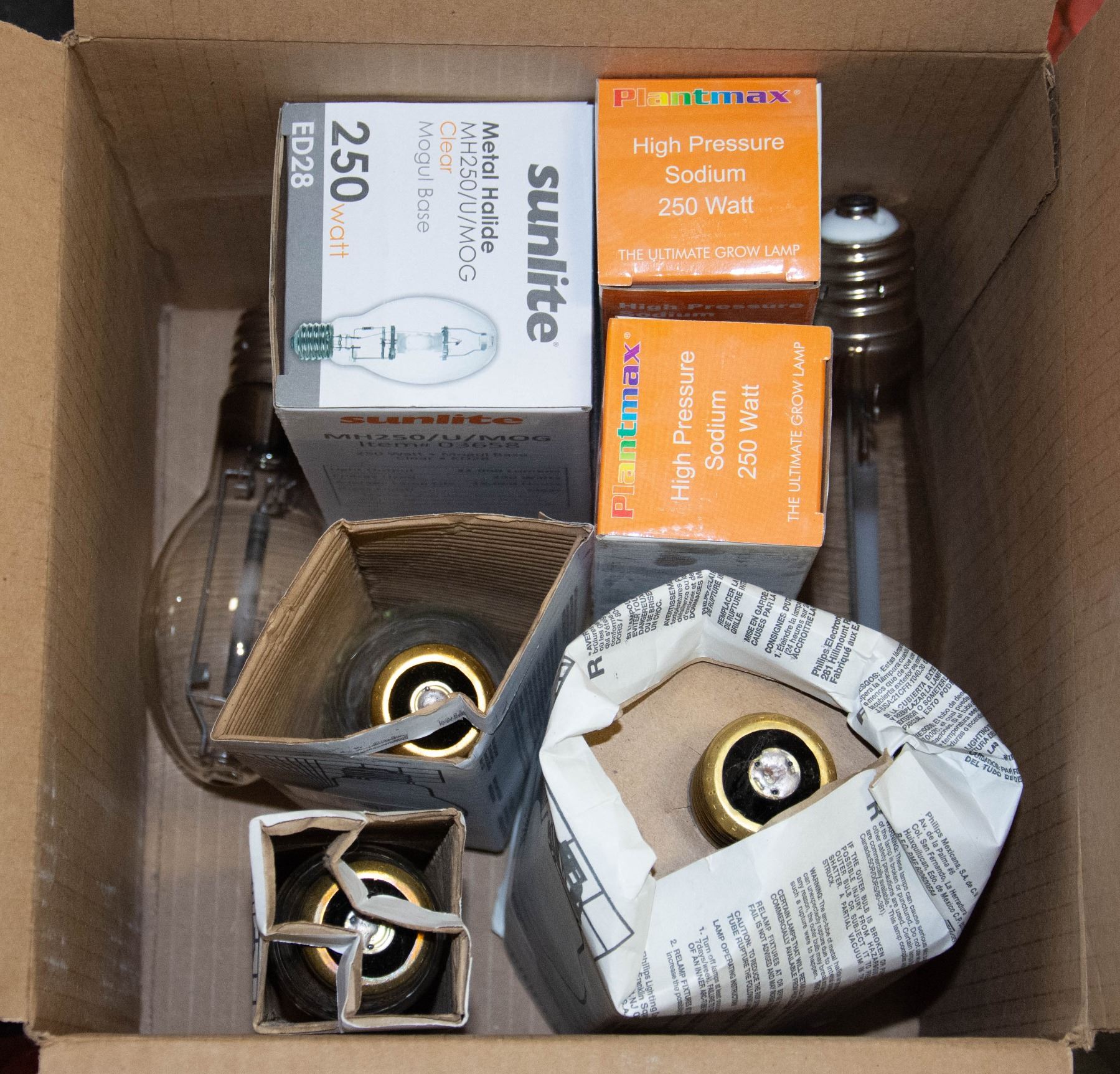 BOX OF HID BULBS, HPS AND MH ALL MOGUL