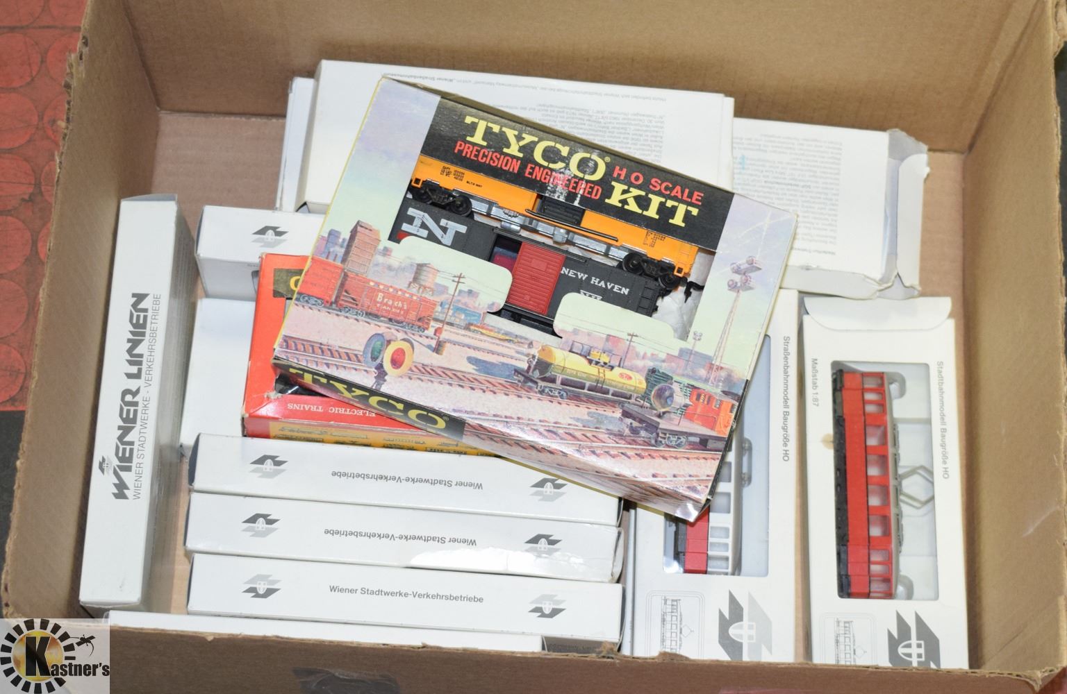 BOX OF HO SCALE TRAIN CARS