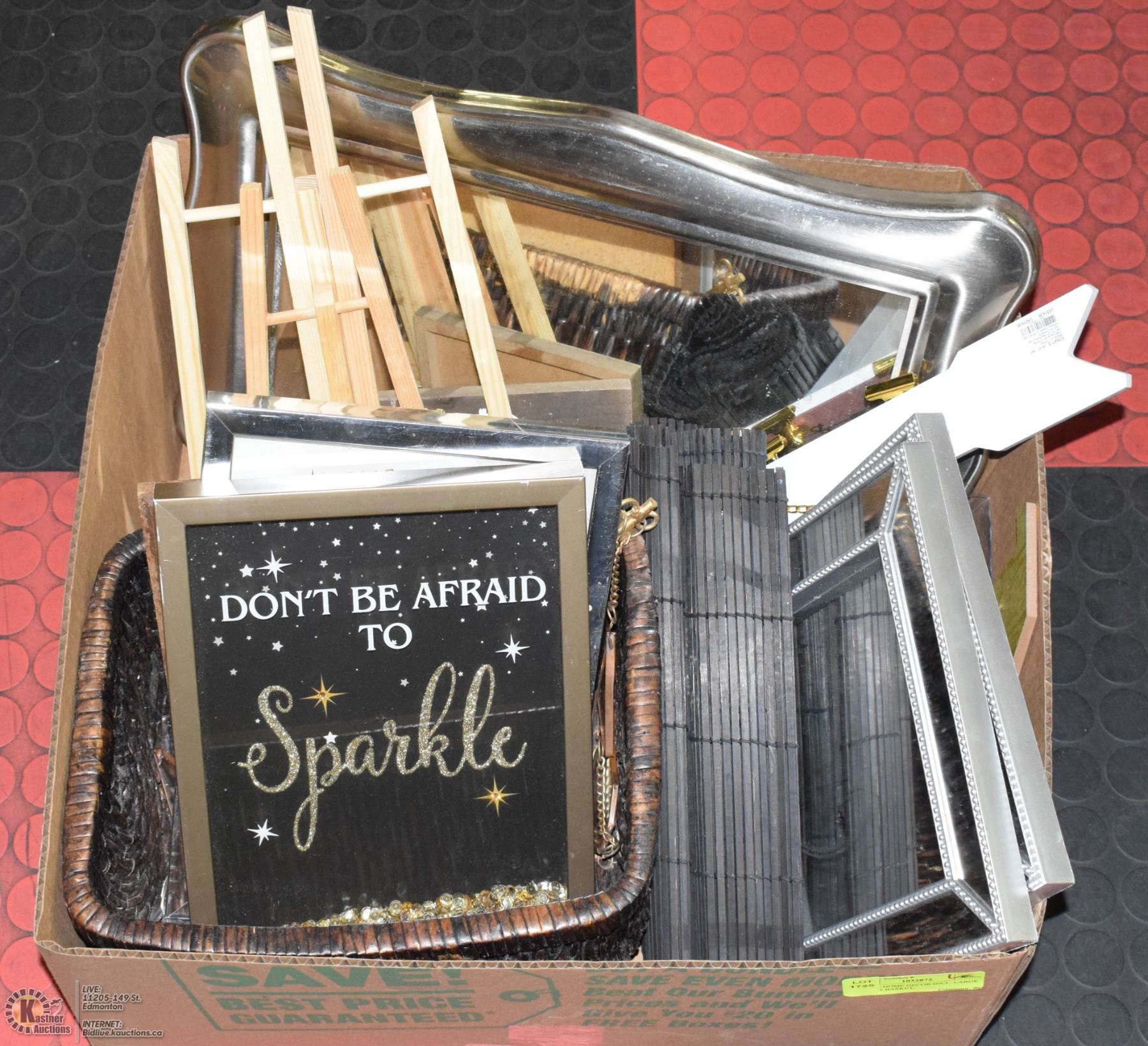 WALL MIRROR, NOTE HANGER ARROW, BLACK BAMBOO MATTS, DECORATIVE MIRRORS, SMALL EASELS, NEW ITEMS, ETC.