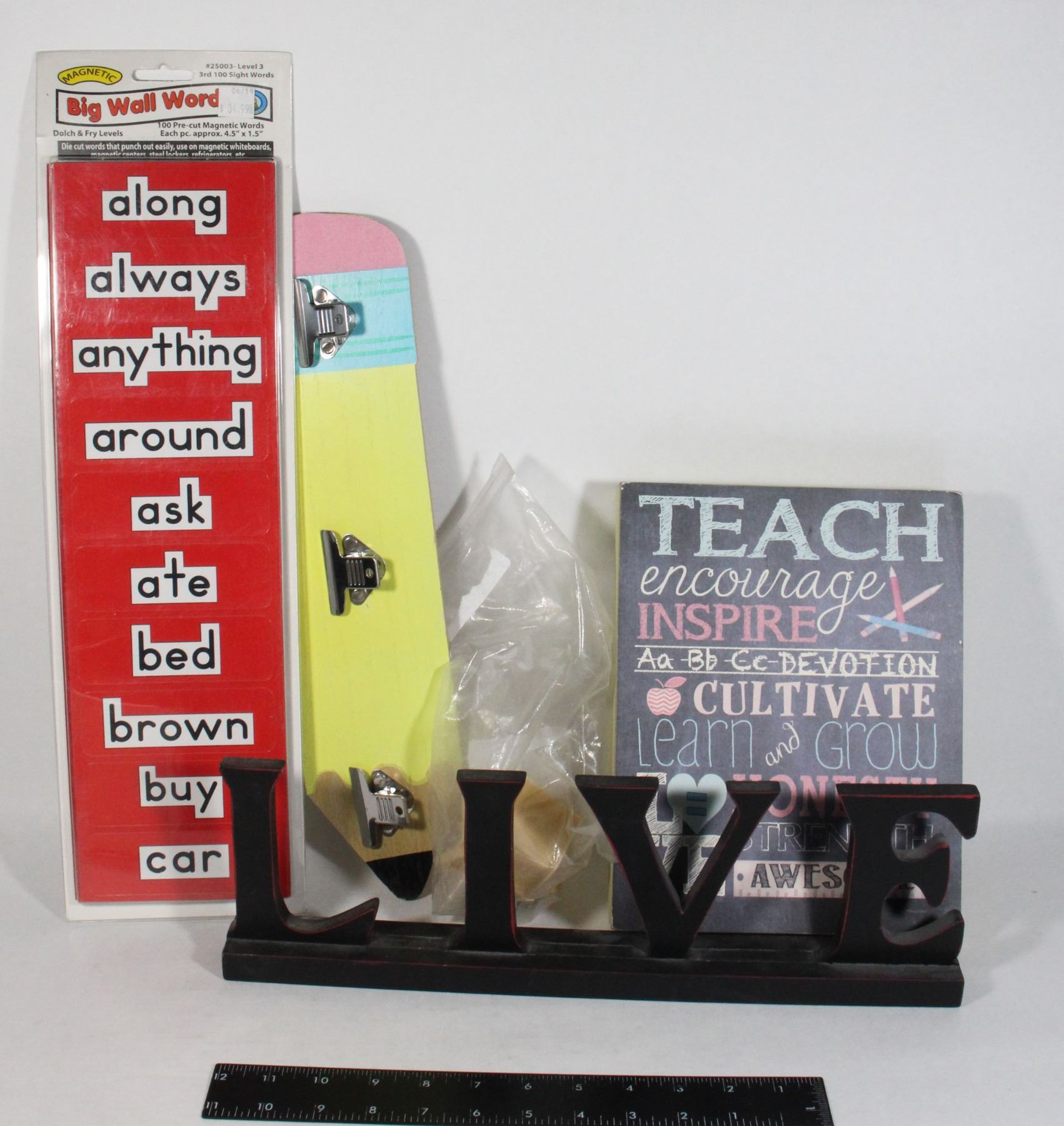 WOOD PIECE, KIDS ARTWORK HOLDER, NEW MAGNETIC WORDS, AND MORE