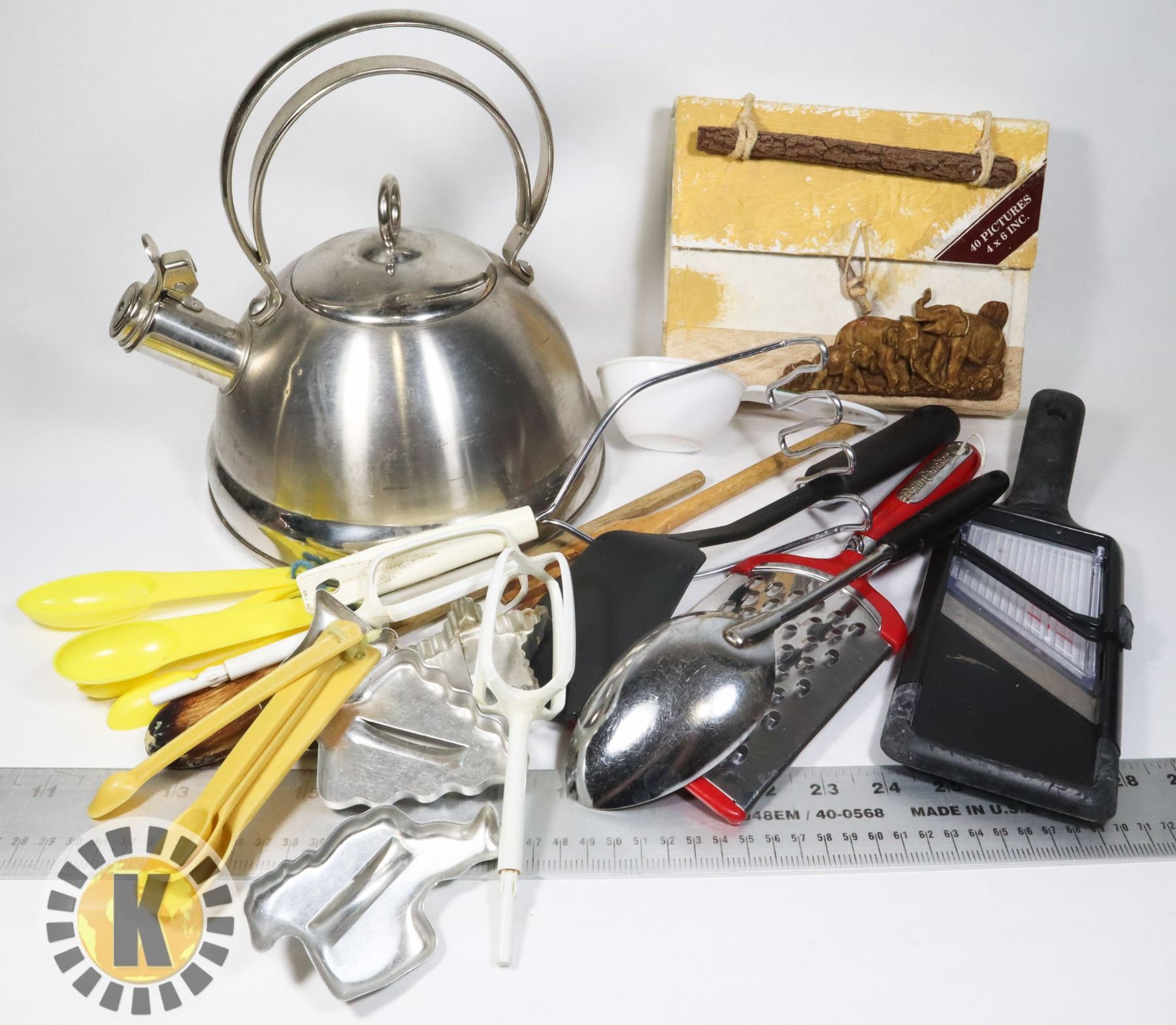KETTLE, KITCHEN UTENSILS, AND MORE***ITEM(S) LOCATED IN LETHBRIDGE ALBERTA. SMALL ITEMS ONLY ARE AVAILABLE FOR FREE TRANSPORT TO EDMONTON OFFICE (READ AUCTION DETAILS FOR MORE INFORMATION)