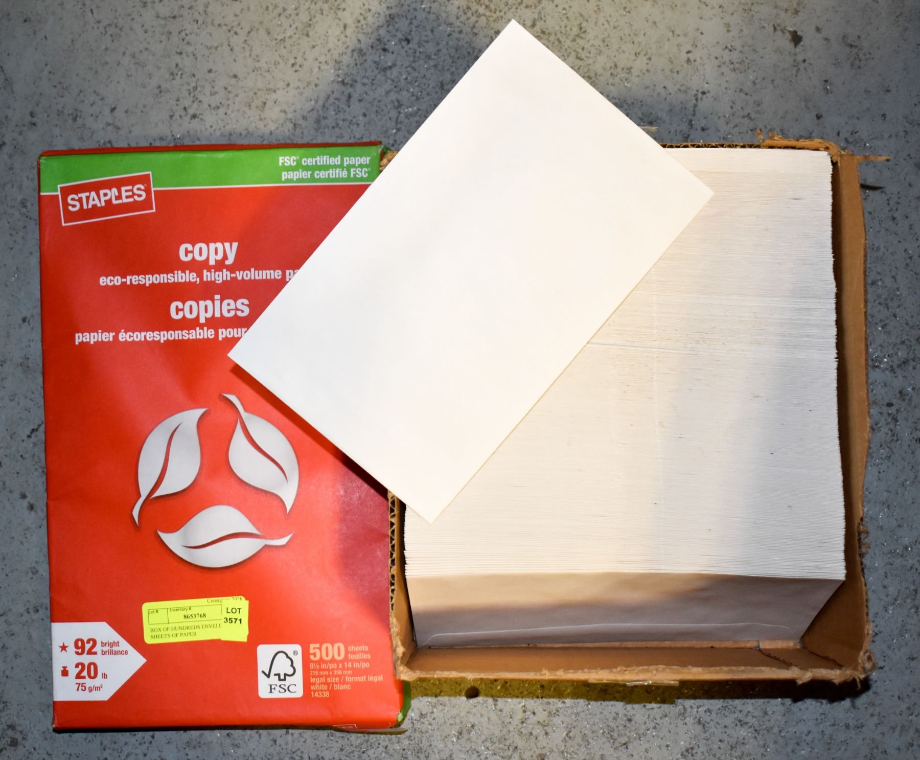 BOX OF HUNDREDS ENVELOPES, 500 SHEETS OF PAPER