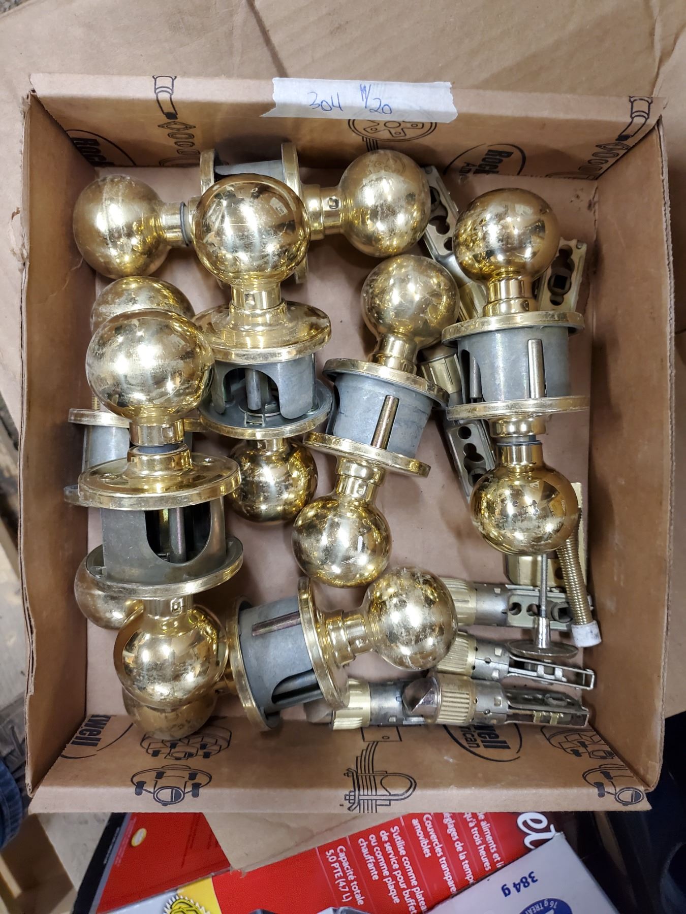 BOX OF INDOOR BRASS COLOURED DOOR KNOBS