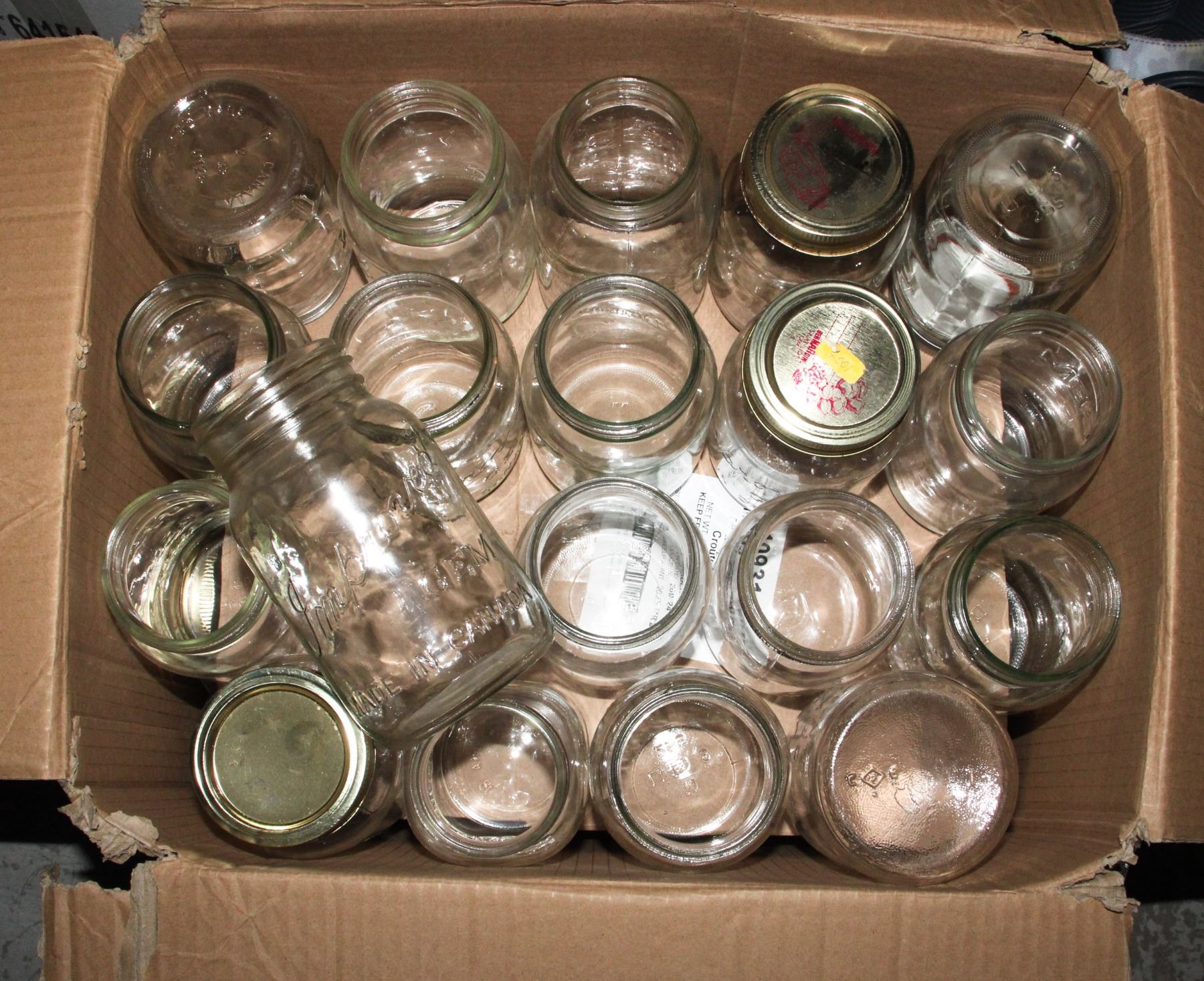 BOX OF JARS INCLUDING DOMINION GEM, IMPROVED