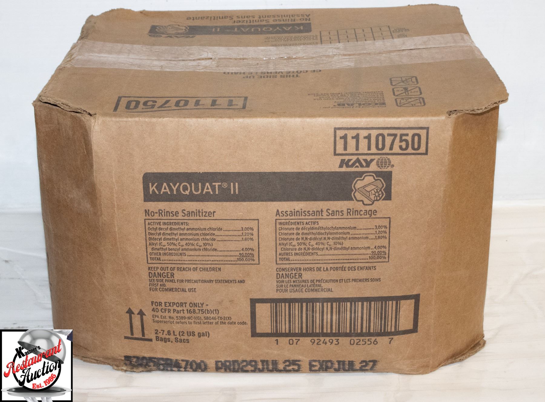 BOX OF KAY KAYQUAT II NO RINSE SANATIZER