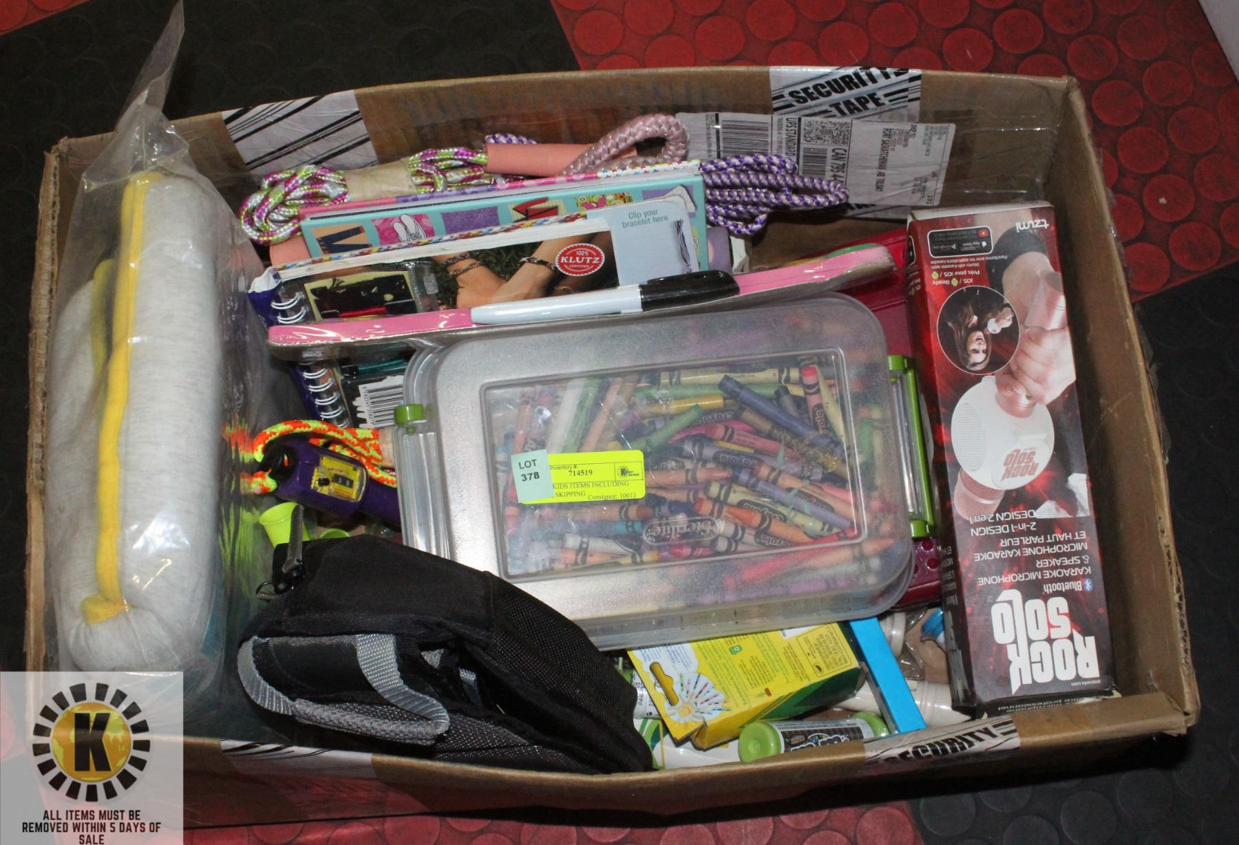 BOX OF KIDS ITEMS INCLUDING CRAFTS, SKIPPING