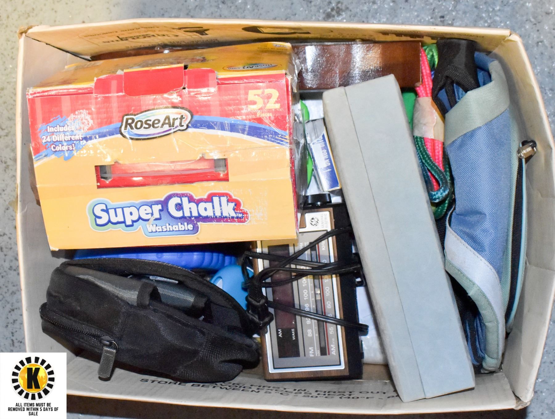 BOX OF KIDS ITEMS WITH JEWELRY BOX & CHALK