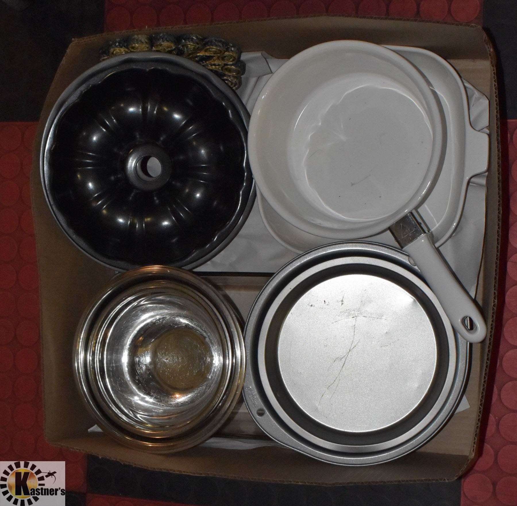 STAINLESS STEEL MIXING BOWL SET, GLASS BAKE PAN, BAKE PANS, SAUCE POT WITH DETACHABLE HANDLE, CAKE PANS, ETC.**ALL ITEMS MUST BE REMOVED BY 5PM MONDAY, OCTOBER 10TH, 2022. ALL REMAINING ITEMS WILL BE SUBJECT TO A $6.00 PER DAY STORAGE CHARGE. ANY ITEMS REMAINING AFTER MONDAY, OCTOBER 24TH, 2022 WILL BE CONSIDERED FORFEITED. NO REFUNDS WILL BE ISSUED FOR FORFEITED ITEMS. TO SCHEDULE A PICK UP APPOINTMENT CLICK HERE