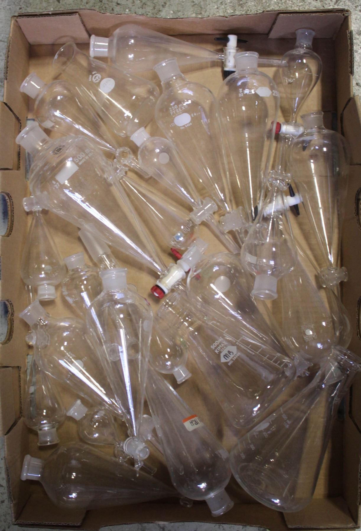 BOX OF LABORATORY GLASS BEAKERS + MORE