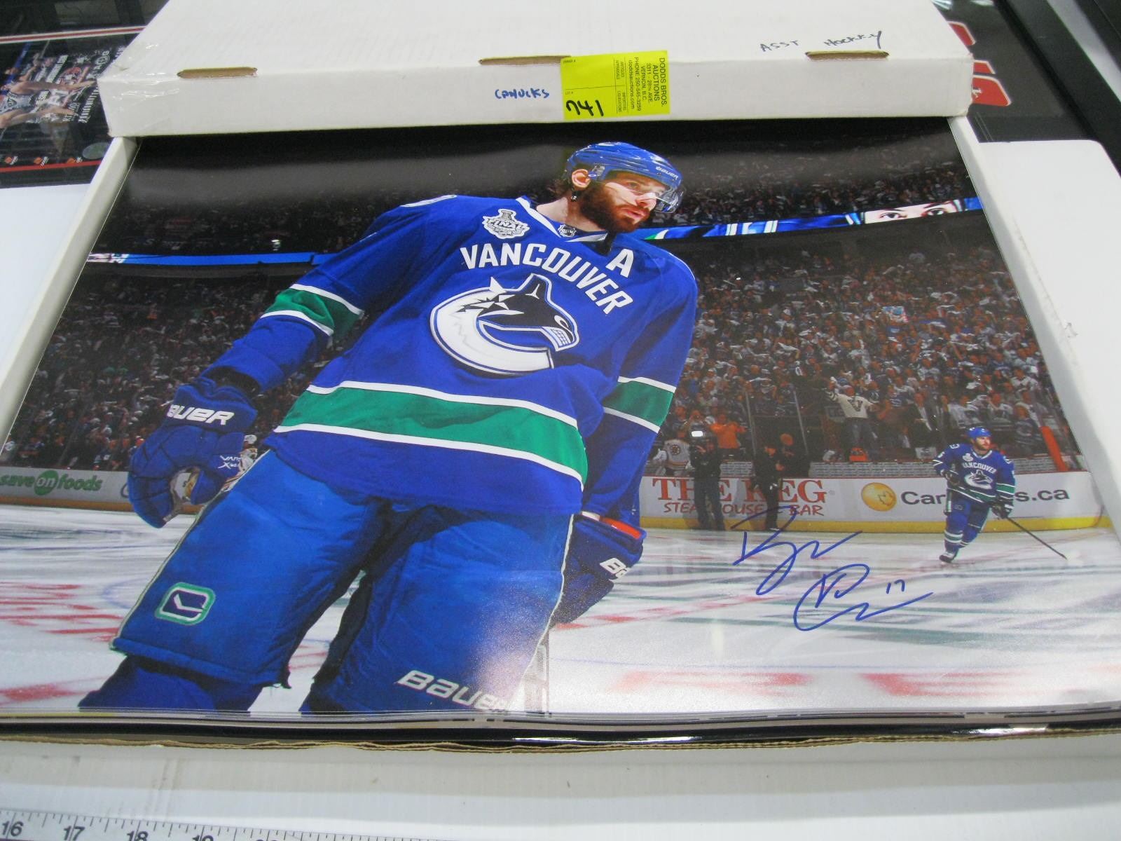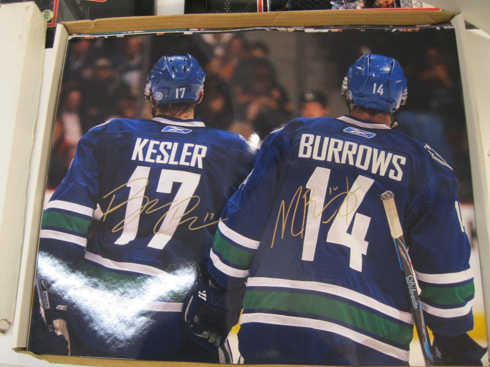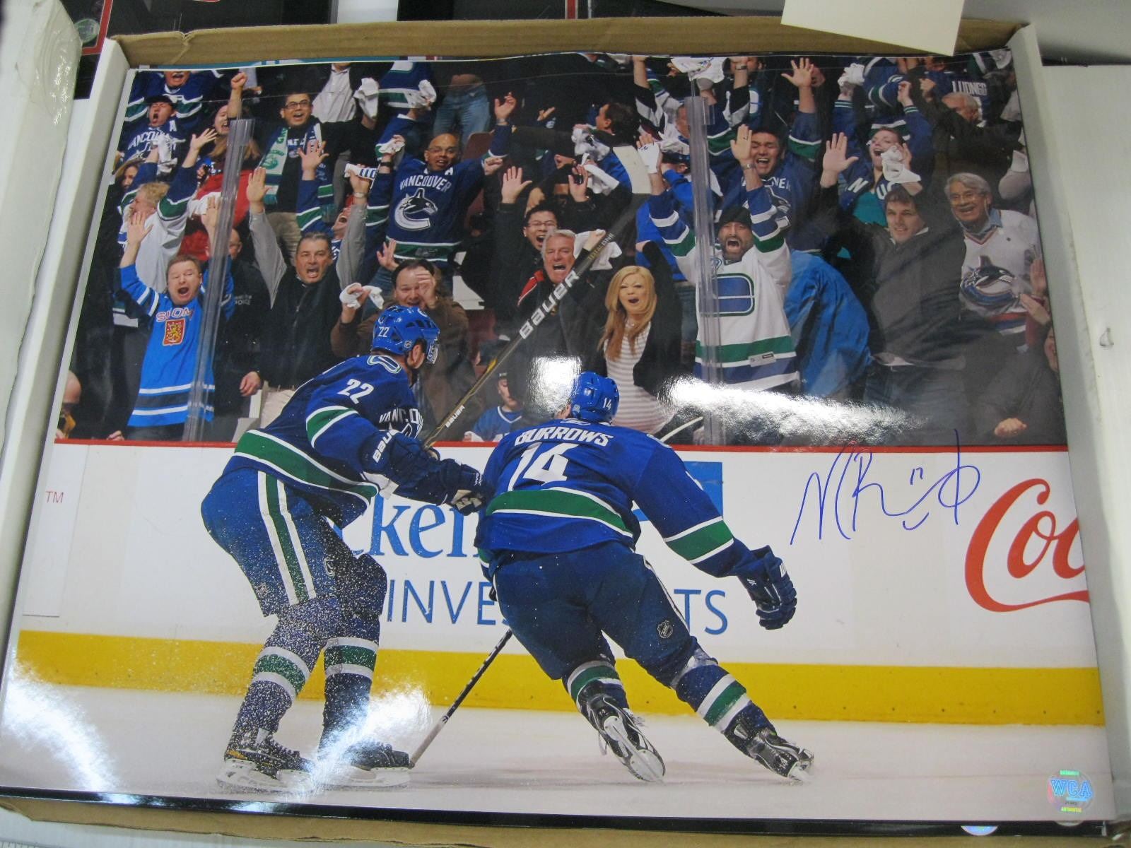 BOX OF LARGE SIGNED VANCOUVER CANUCKS PHOTOS