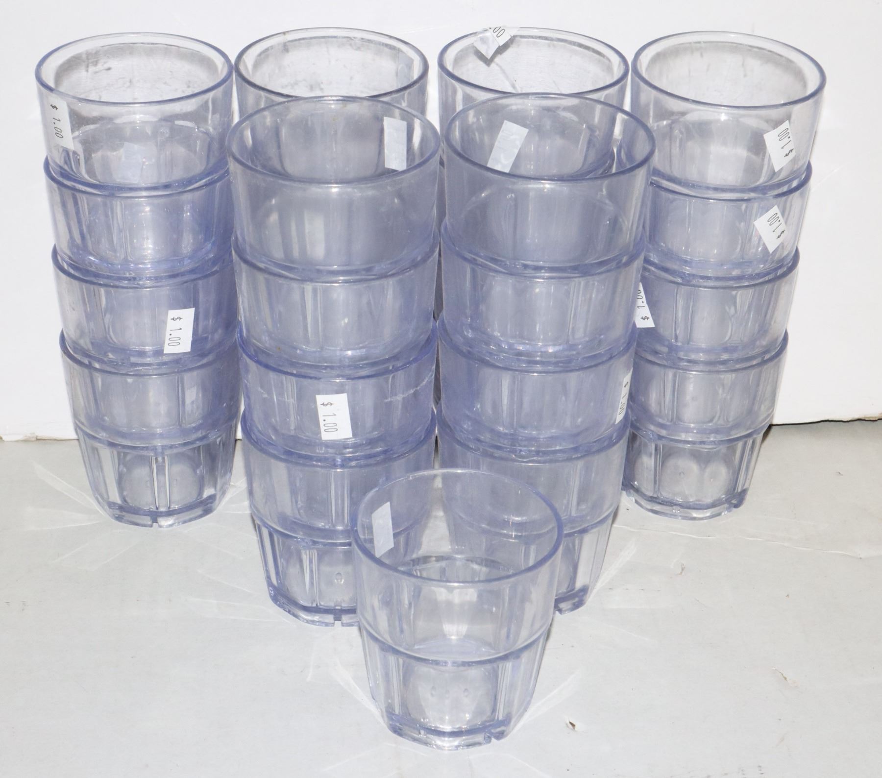 BOX OF MATCHING PLASTIC RESTAURANT GLASSES